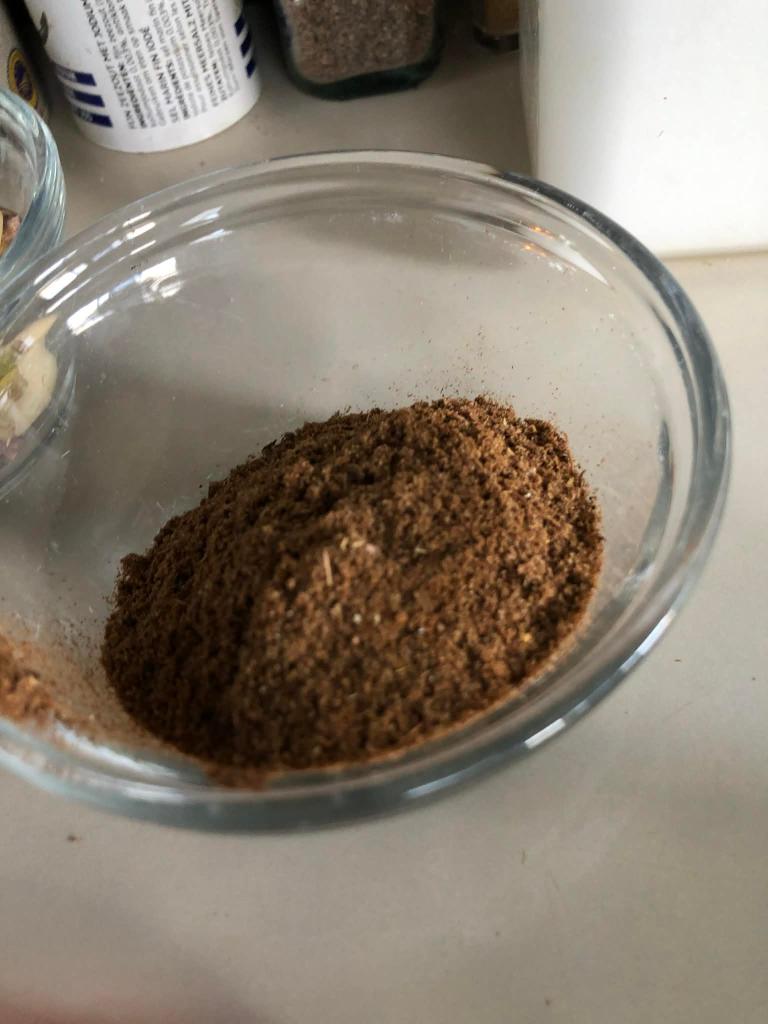 Dans un mortier, placer les herbes et les épices, un peu de sel et de poivre. Verser dessus 4 c à s d’huile d’olive, le zeste de citron et le jus de citron et pilonner le tout jusqu’à obtenir une pâte homogène. Le mortier permet de bien dégager les arômes des ingrédients, mais on peut également le faire au blender électrique.