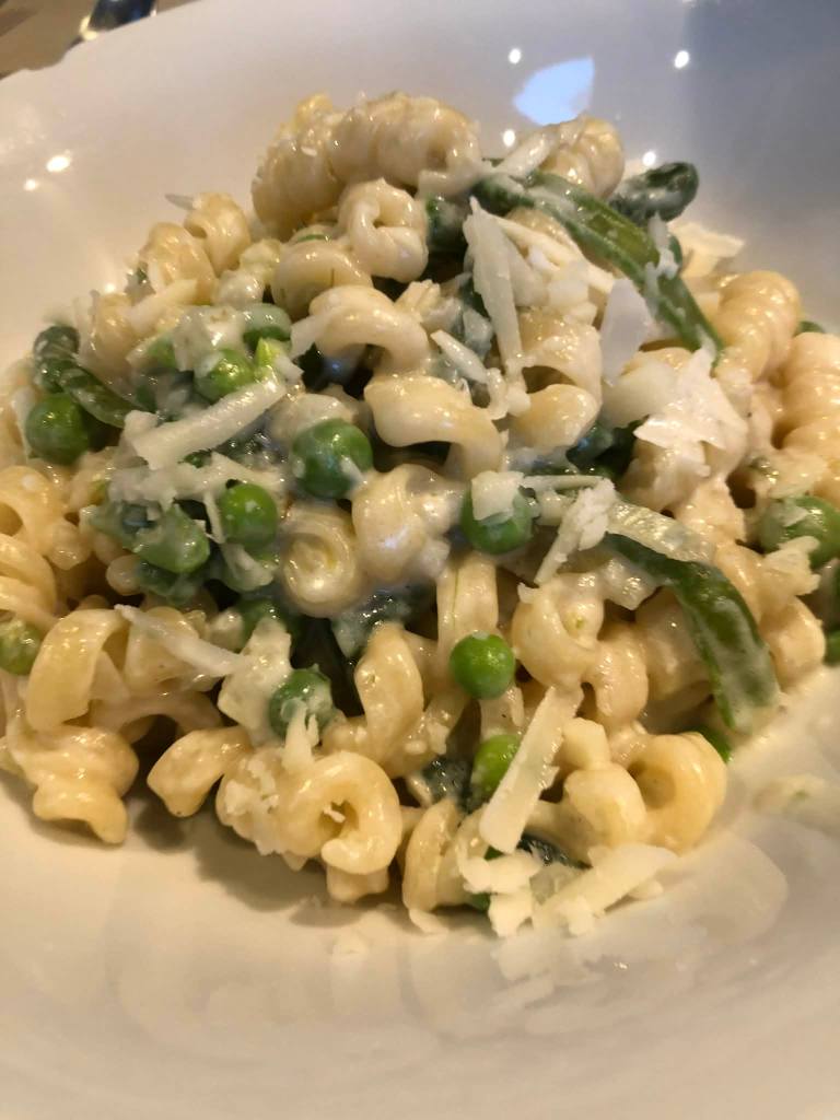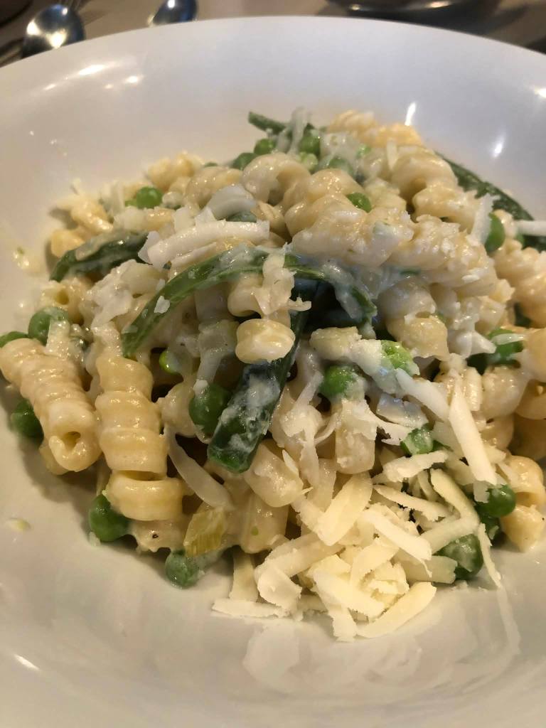 Les premiers petits pois, les haricots, des jeunes fenouils, vive le printemps ! Une bonne recette dans le magazine Delhaize Le Lion, sue très peu adapté. C’est bien bon.