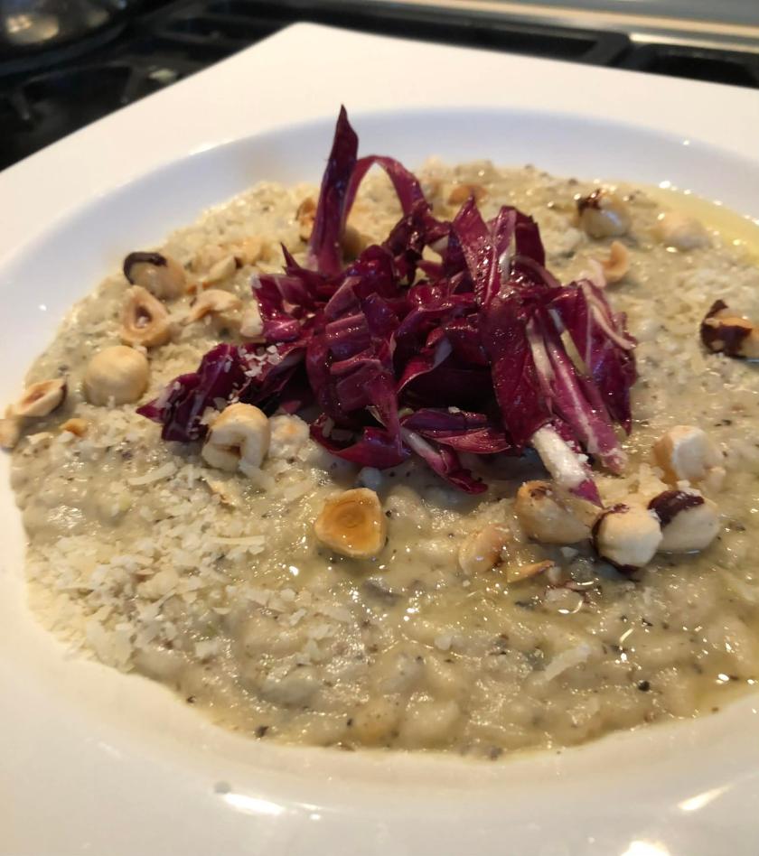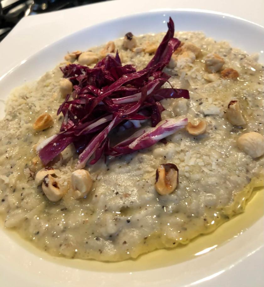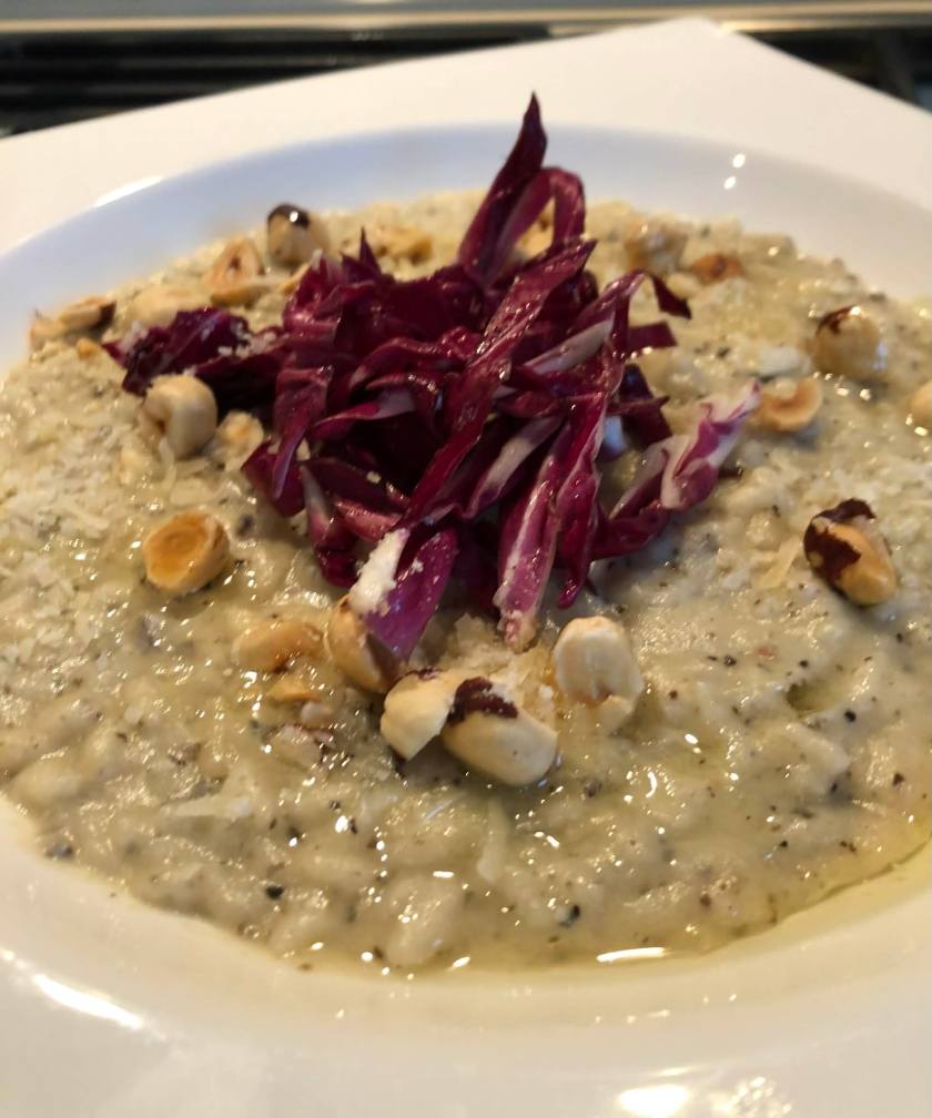 RISOTTO DE CHOU-FLEUR TARTUFATA, NOISETTES ET TREVISE