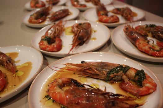 Noël 2018 : Entrée 1 : Grosses gambas poêlées et vinaigrette au yuzu