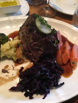 Salmis de pintade à la bruxelloise (kriek Cantillon), stoemp de choux de Bruxelles