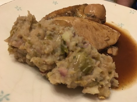 Salmis de pintade à la bruxelloise (kriek Cantillon), stoemp de choux de Bruxelles