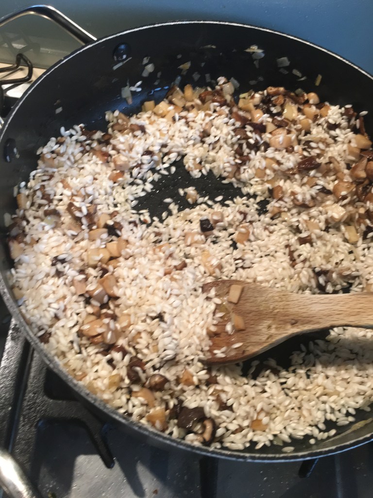 Risotto aux asperges blanches et champignons de Bruxelles (shiitake, eryngii et nameko)