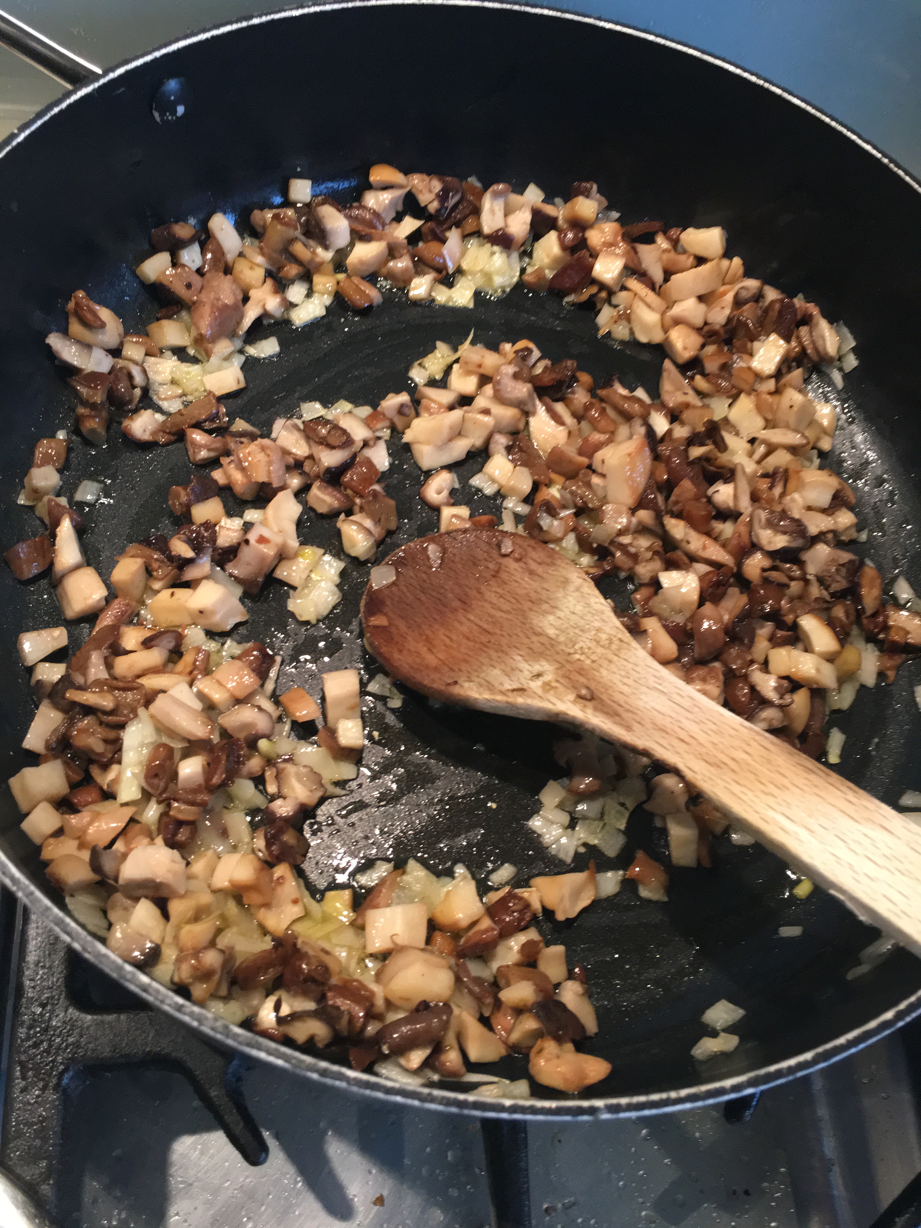 Risotto aux asperges blanches et champignons de Bruxelles (shiitake, eryngii et nameko)