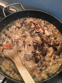 Risotto aux asperges blanches et champignons de Bruxelles (shiitake, eryngii et nameko)