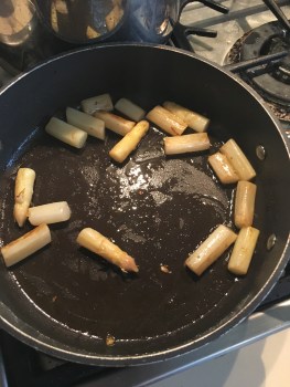 Risotto aux asperges blanches et champignons de Bruxelles (shiitake, eryngii et nameko)