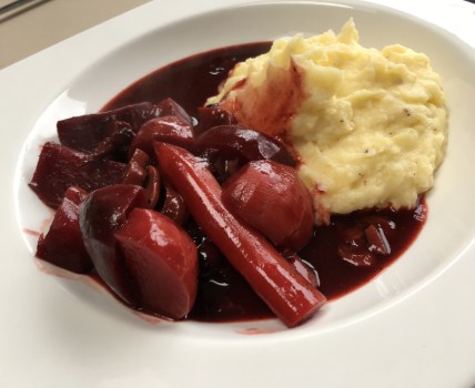 Ragoût (comme un bourguigon) de racines et de queue de boeuf