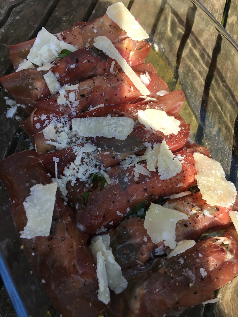 Bresaola, ricotta, rucola, basilico e parmigiano