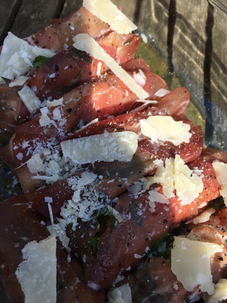 Bresaola, ricotta, rucola, basilico e parmigiano