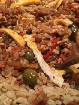 Salade de blé tiède aux légumes ‘hoisin & aigre-doux’, omelette