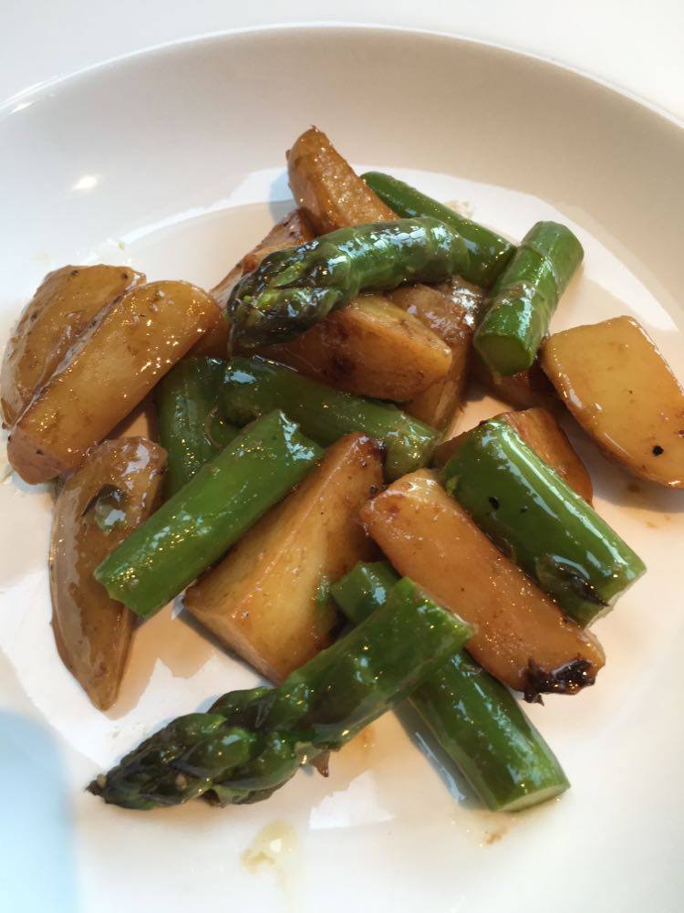 Tagliata de boeuf, asperges vertes et crémeux de pourpier d’hiver