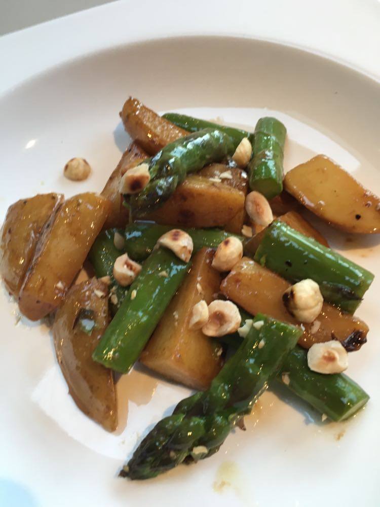 Tagliata de boeuf, asperges vertes et crémeux de pourpier d’hiver