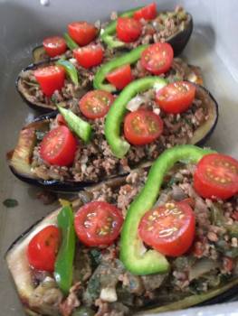 Patlican Karniyarik (aubergines ‘éventrées’ à la turque), sauce yaourt citronnée