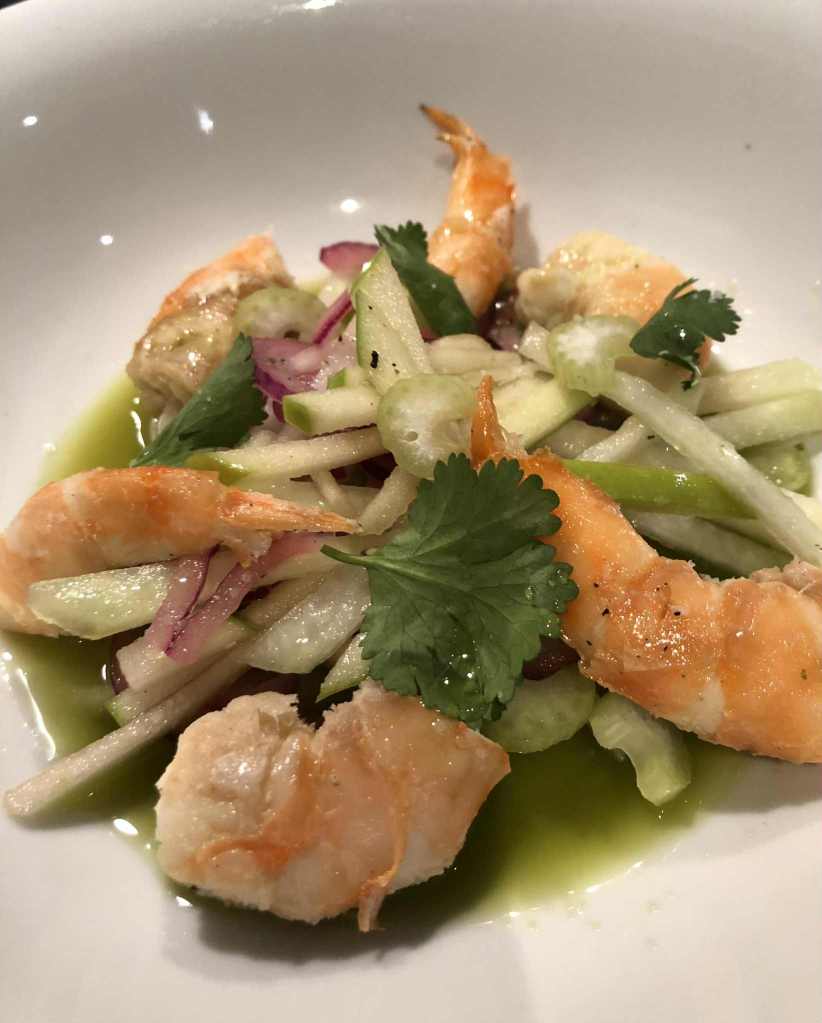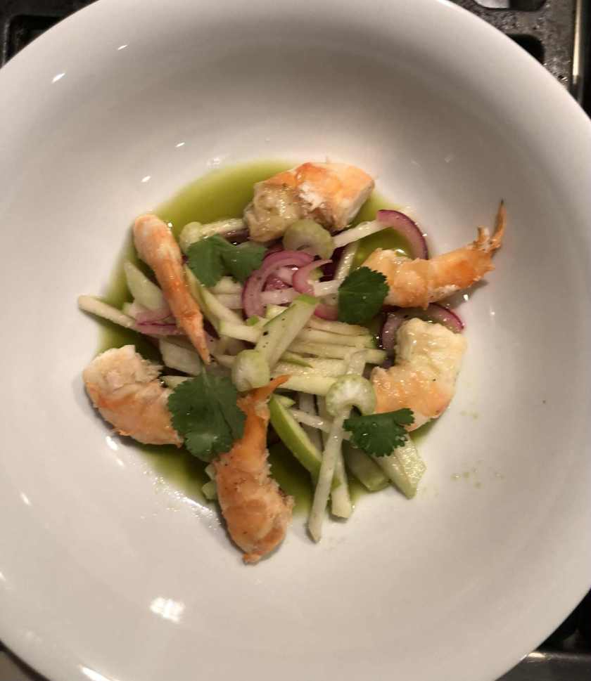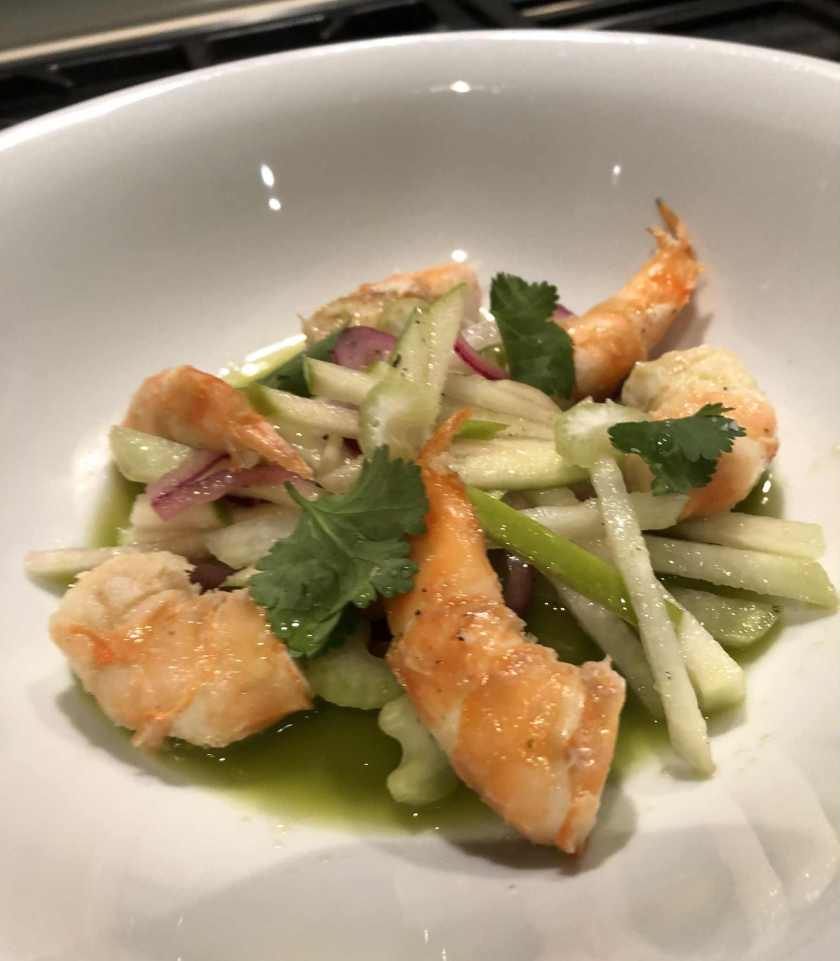 NOUVEL AN 2025 : BLACK TIGER GRILLES, AGUACHILE ET LEGUMES CROQUANTS Cette année, je n’ai pas fait de plat principal, mais quatre petites entrées. Celui que j’ai préféré était celui-ci. C’est bien frais comme ouverture d’un menu. J’aime de plus en plus les légumes crus, ici le chou rave, le céleri, l’oignon rouge et la … Continuer à lire … « Nouvel An 2025 : Black Tiger grillés, aguachile et légumes croquants »