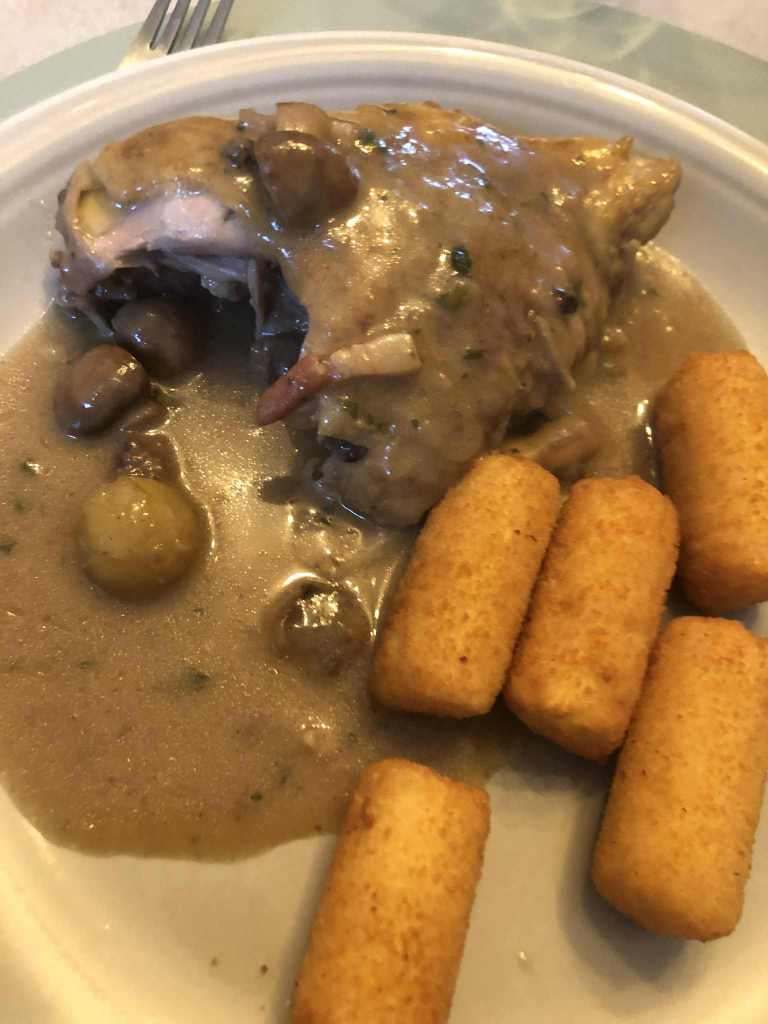 Nous avons beaucoup aimé et j’attends avec impatience la recette de tante Rosa que son fils a quelque part dans ses archives. On en remange ce lundi, il reste une cuisse et deux blancs.