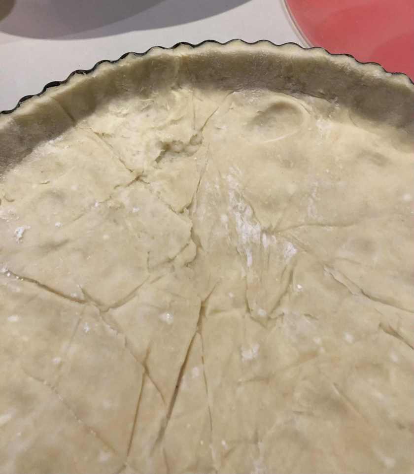 Placer le fond de tarte dans le moule. Piquer le fond de tarte avec une fourchette. Egaliser les bords.