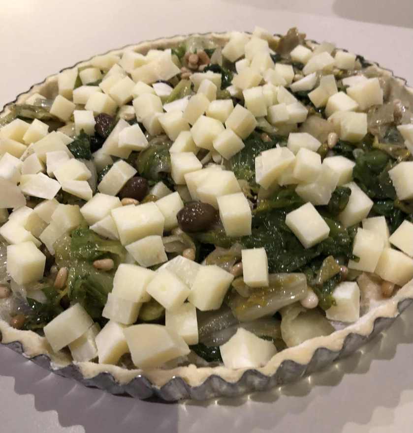 TARTE SALEE A LA SCAROLE, AUX ANCHOIS ET AU CACIOCAVALLO