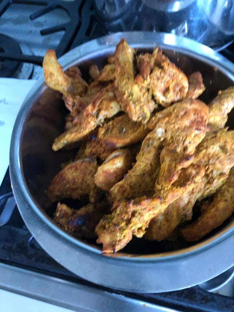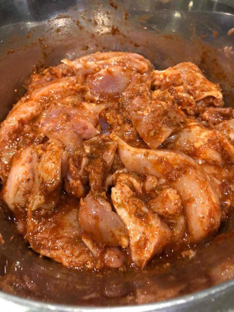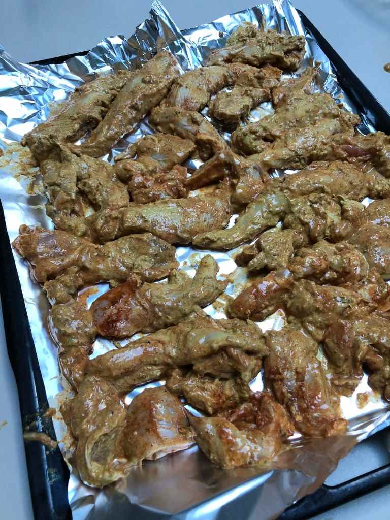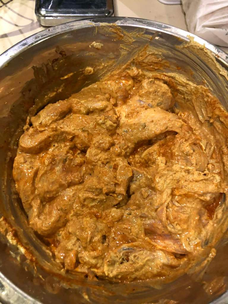 En principe, en Inde, le poulet ce cuit dans un tandoor, mais à défaut d’en avoir un, je fais griller le poulet au four.