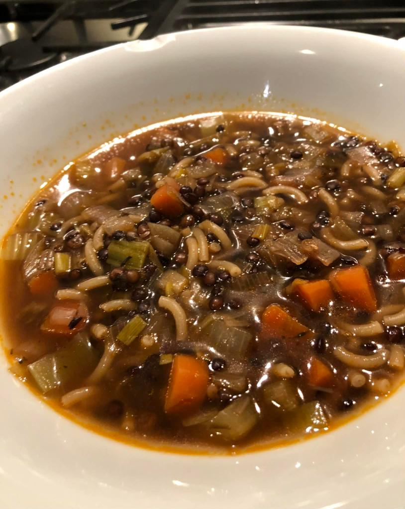 POTAGE DE LEGUMES AUX LENTILLES ET PETITES PATES