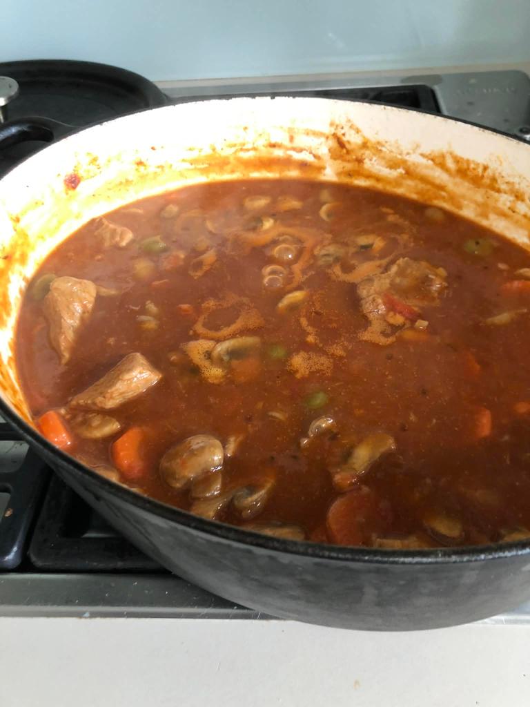 J’avais envie de changer mes habitudes et j’ai donc préparé ce veau marengo comme plat familialdu dimanche. Tout aussi bon que son cousin.