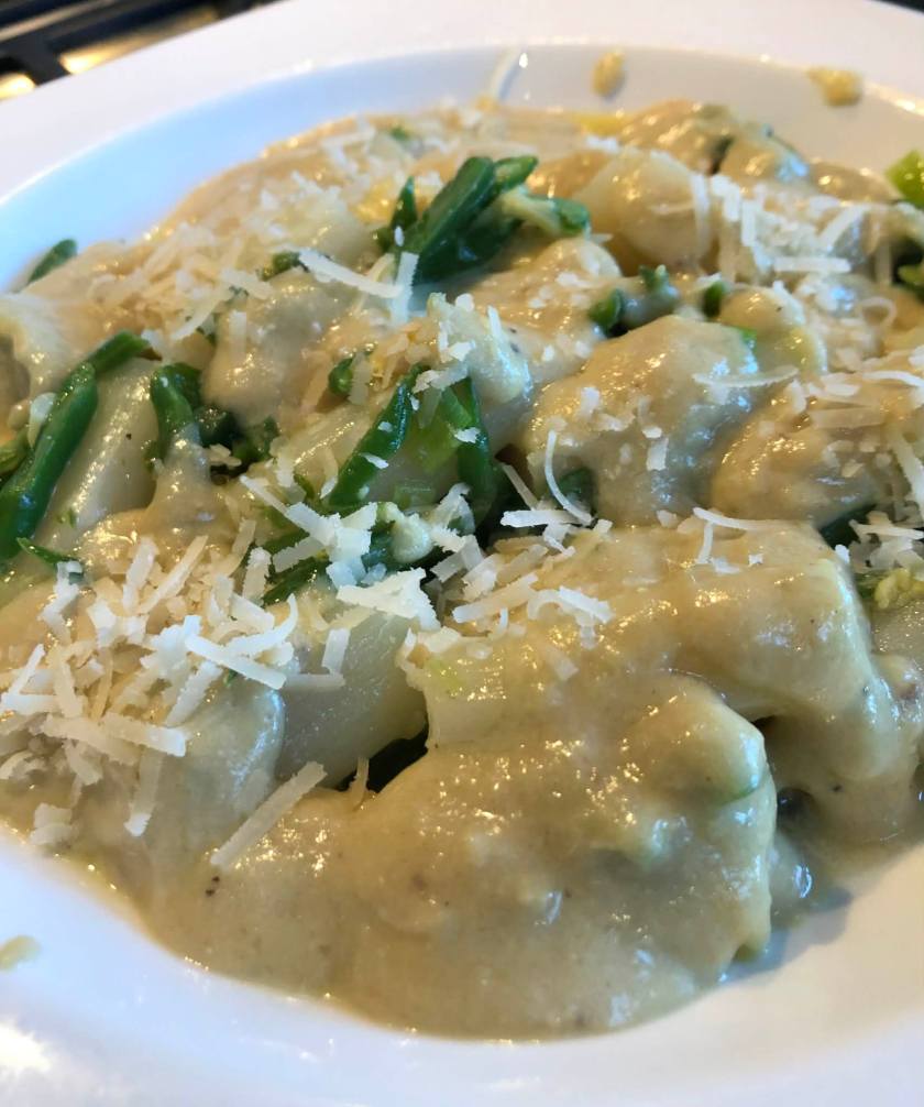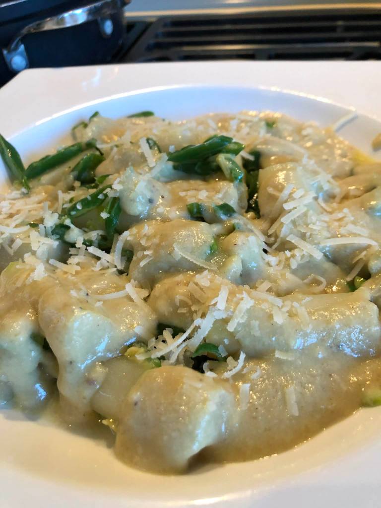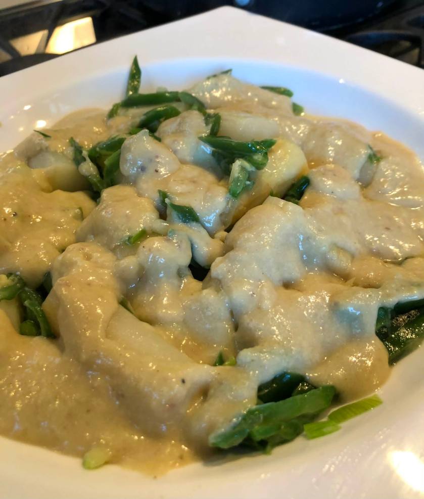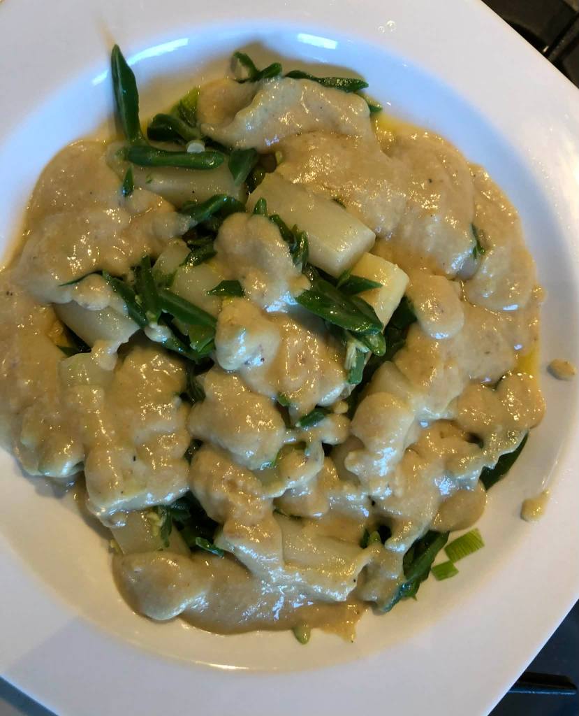 ASPERGES BLANCHES ET HARICOTS A COUPER, SAUCE FACON CARBONARA MAIS A L’ANCHOIS