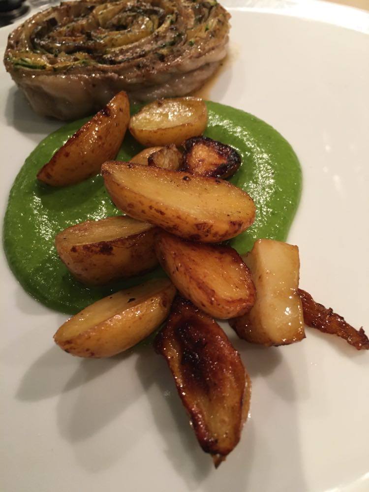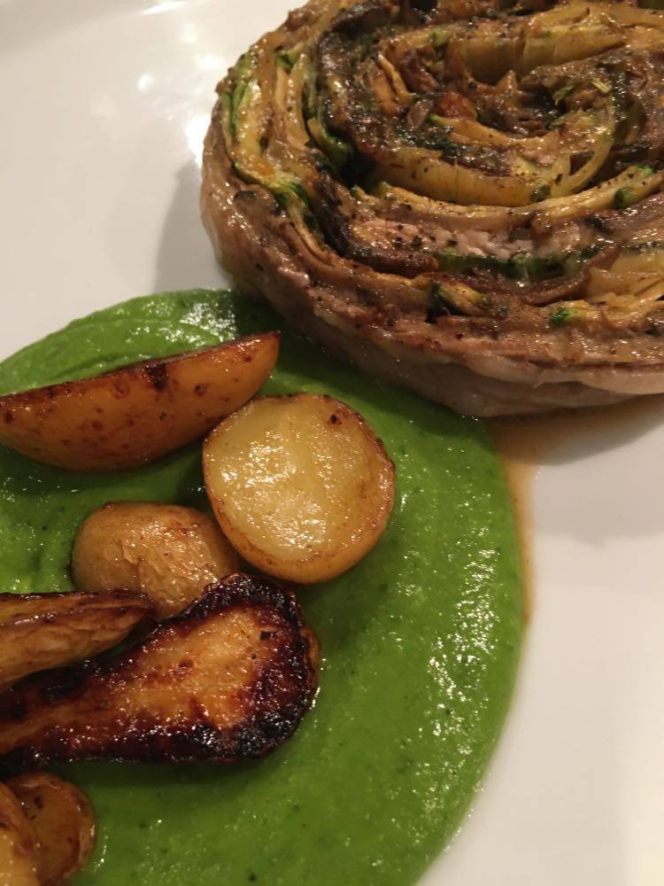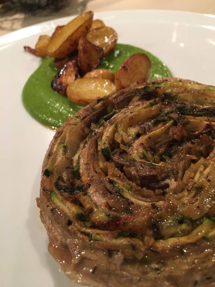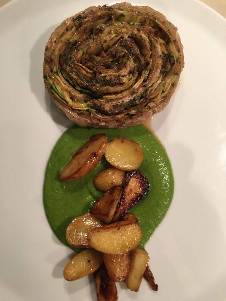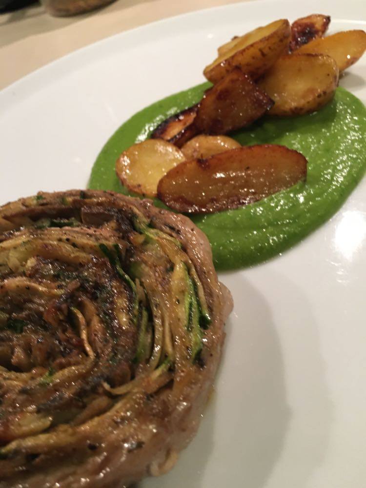 J’ai trouvé qu’il y avait des bonnes idées. Mais déjà quasi pas d’assaisonnement dans le tartare (mais salière et poivrier à table), aucune acidité sur l’assiette (ni citron ni balsamique), quasi pas d’huile d’olive. Manque de punch, pour moi et même le parmesan, pour celles et ceux qui aiment ça dans un tartare, on pouvait compter les copeaux avec les doigts d’une main. J’ai mélangé tout ce qu’il y avait sur mon assiette et assaisonné et j’ai toujours trouvé ça pauvre en goût. Heureusement qu’il y avait en-dessous du parmesan, ce petit peu de purée d’anchois (même si je ne l’ai pas trouvé assez forte en goût).