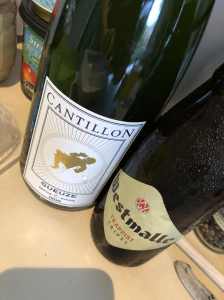75 CL DE GEUZE + UNE BOUTEILLE DE WESTMALLE DOUBLE (BRUNE) DE 33 CL