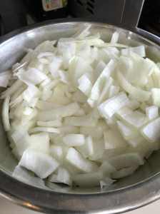 Peler les oignons et les hacher pas trop finement.