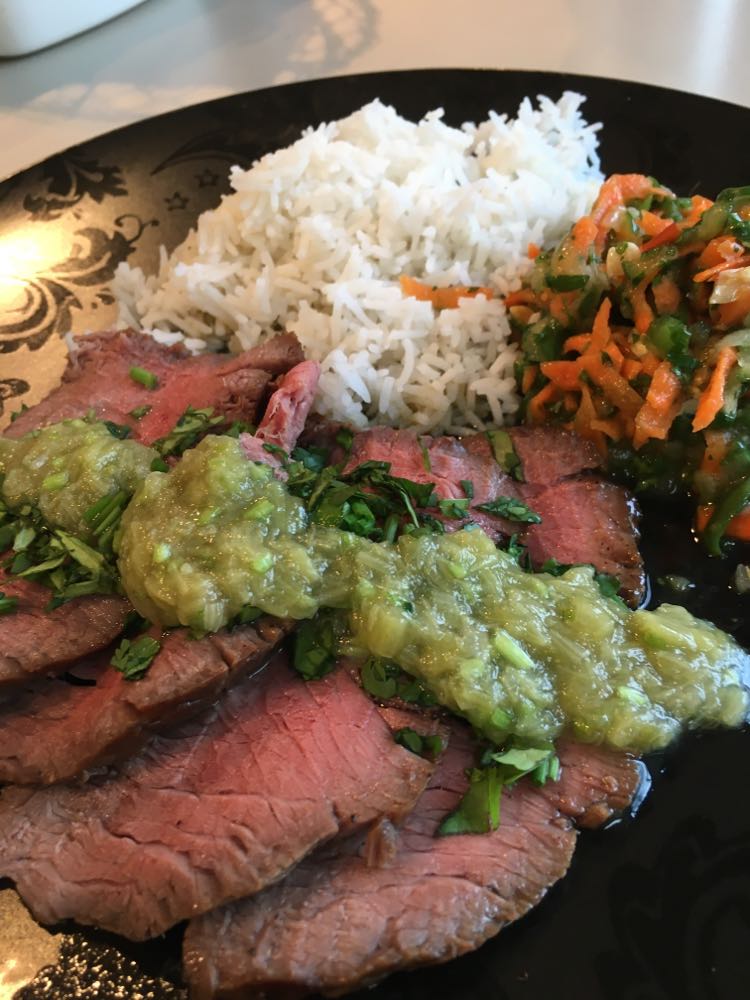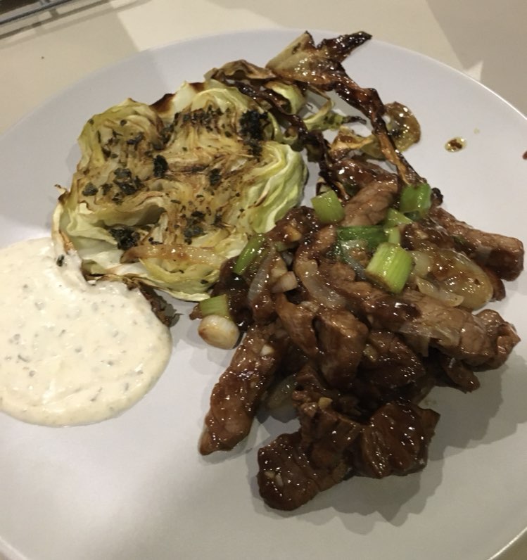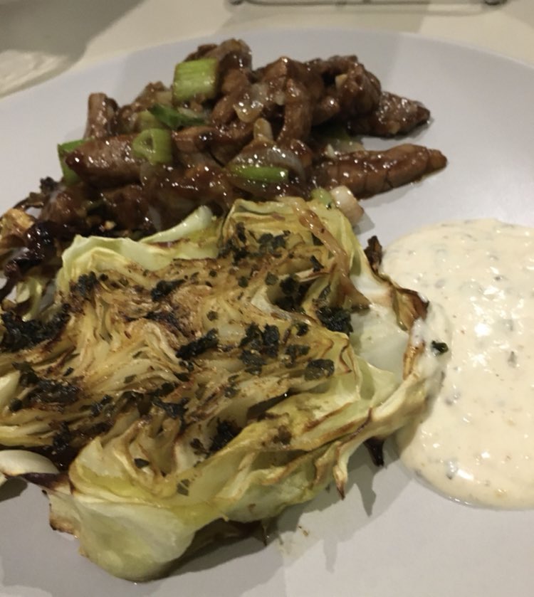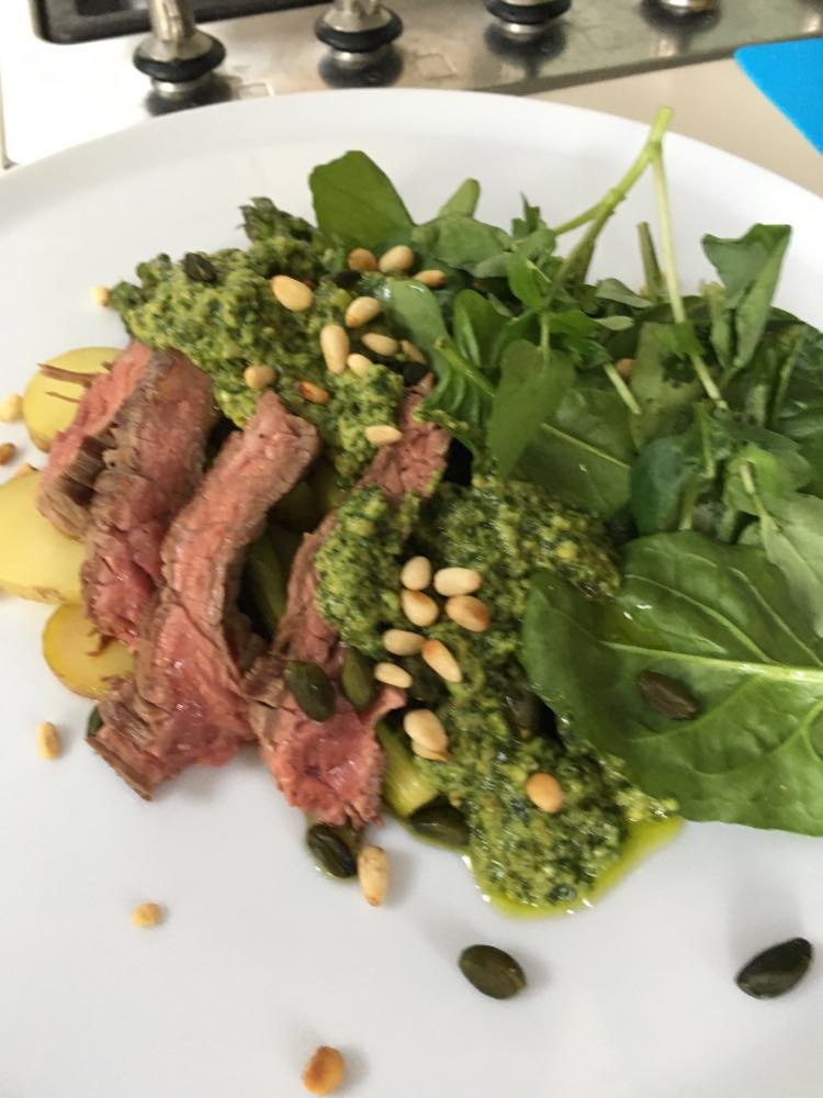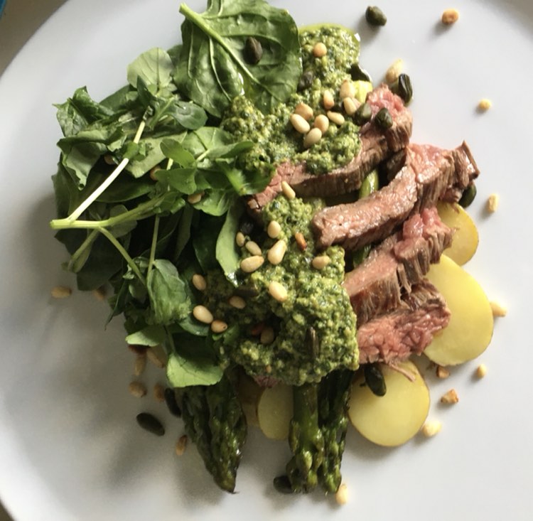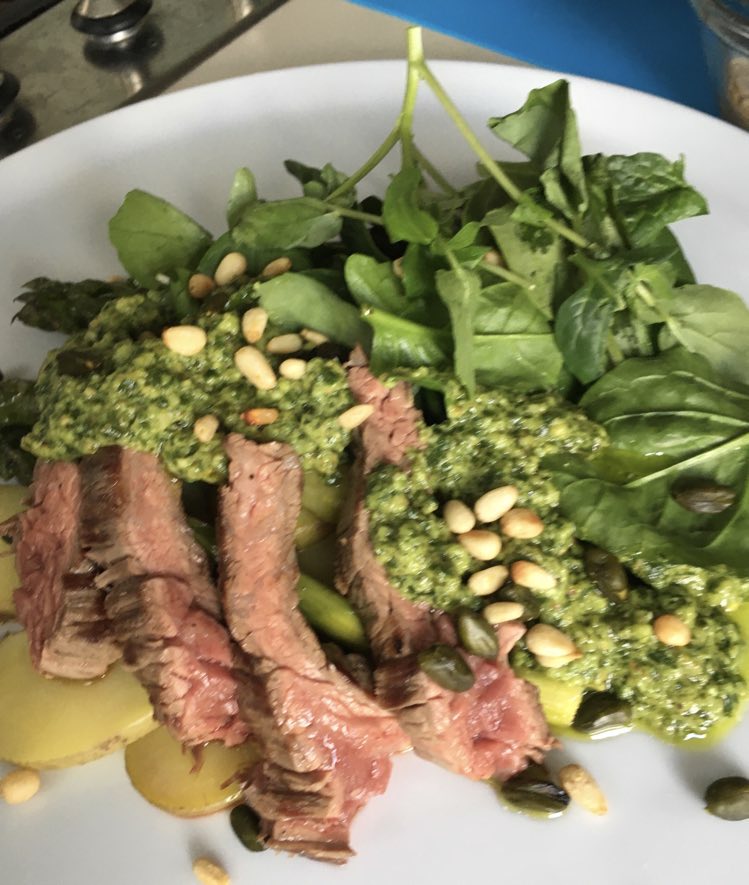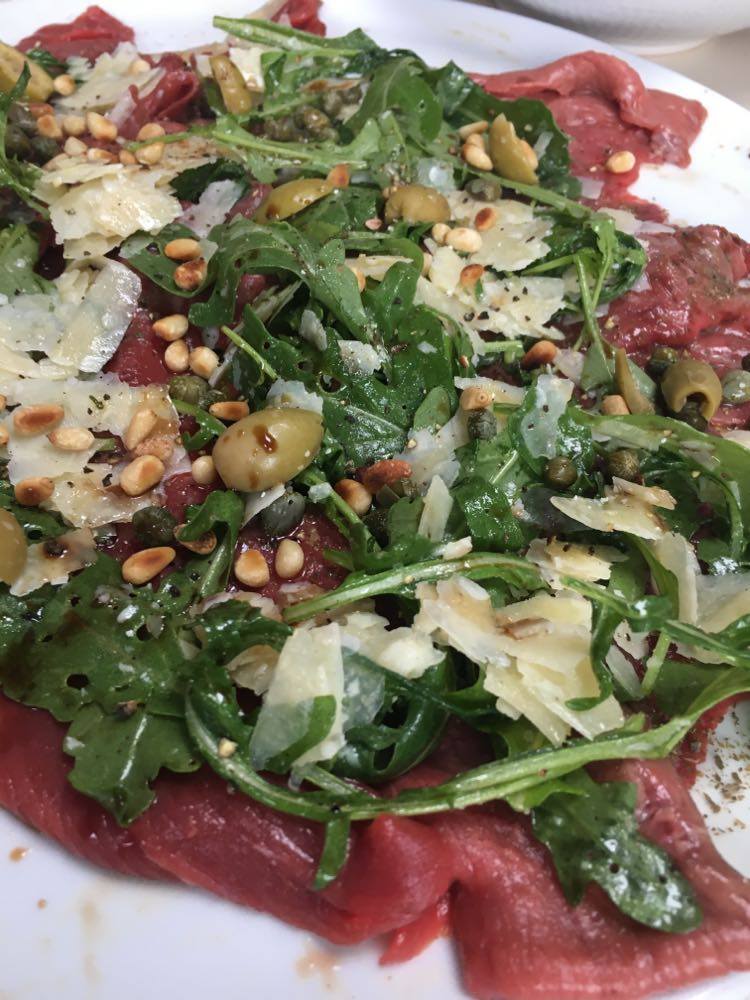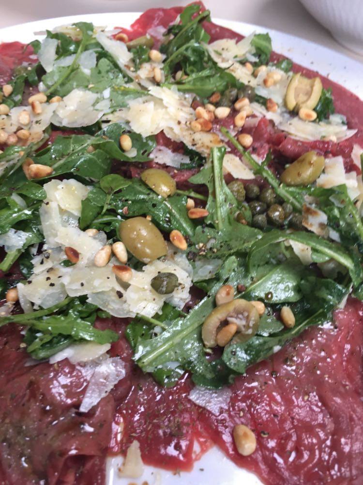 Renato aime bien, à titre personnel, une entrecôte coupée au couteau avec de la ‘colatura di alici’ (produit très fort au goût d’anchois), une très bonne huile d’olive, des câpres au sel dessalés et citron + zeste et pas de parmesan ni de tomate séchée, et encore moins le balsamique.