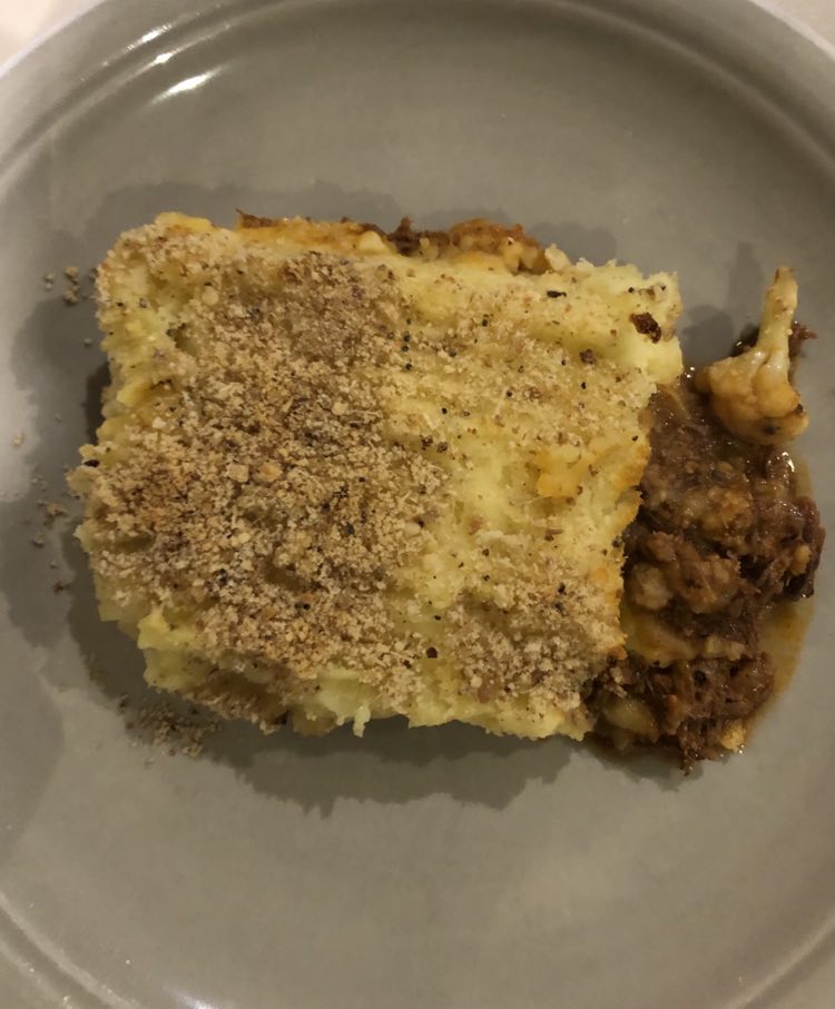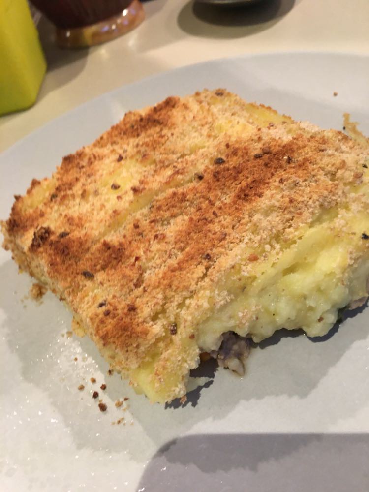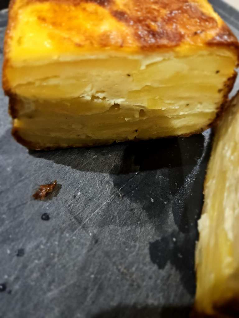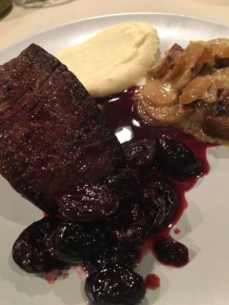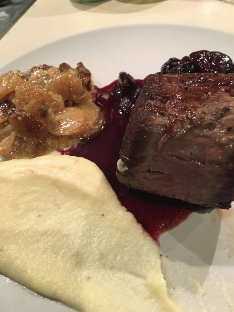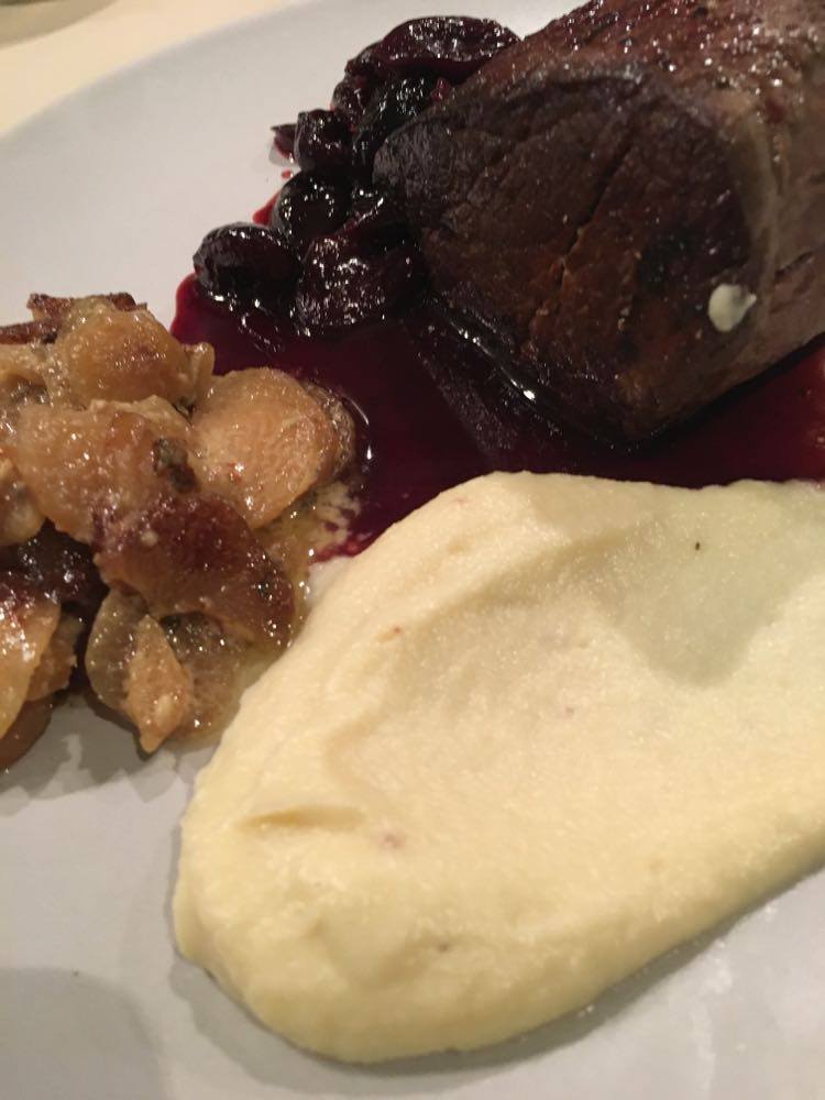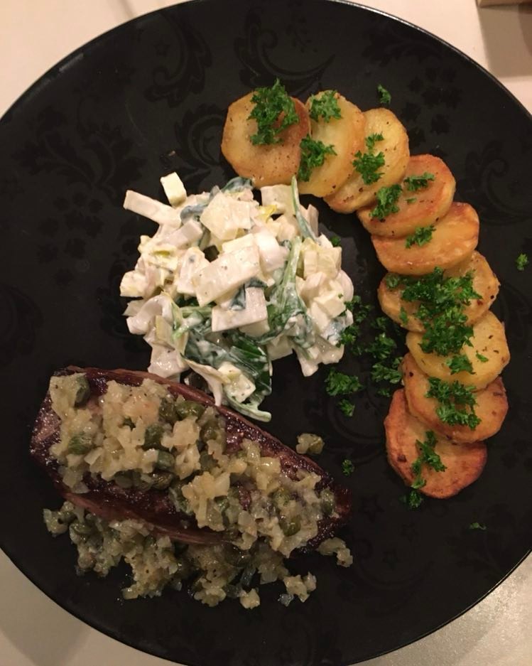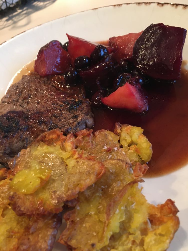 J’ai trouvé qu’il y avait des bonnes idées. Mais déjà quasi pas d’assaisonnement dans le tartare (mais salière et poivrier à table), aucune acidité sur l’assiette (ni citron ni balsamique), quasi pas d’huile d’olive. Manque de punch, pour moi et même le parmesan, pour celles et ceux qui aiment ça dans un tartare, on pouvait compter les copeaux avec les doigts d’une main. J’ai mélangé tout ce qu’il y avait sur mon assiette et assaisonné et j’ai toujours trouvé ça pauvre en goût. Heureusement qu’il y avait en-dessous du parmesan, ce petit peu de purée d’anchois (même si je ne l’ai pas trouvé assez forte en goût).