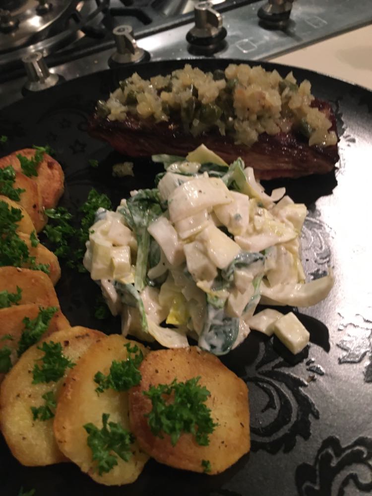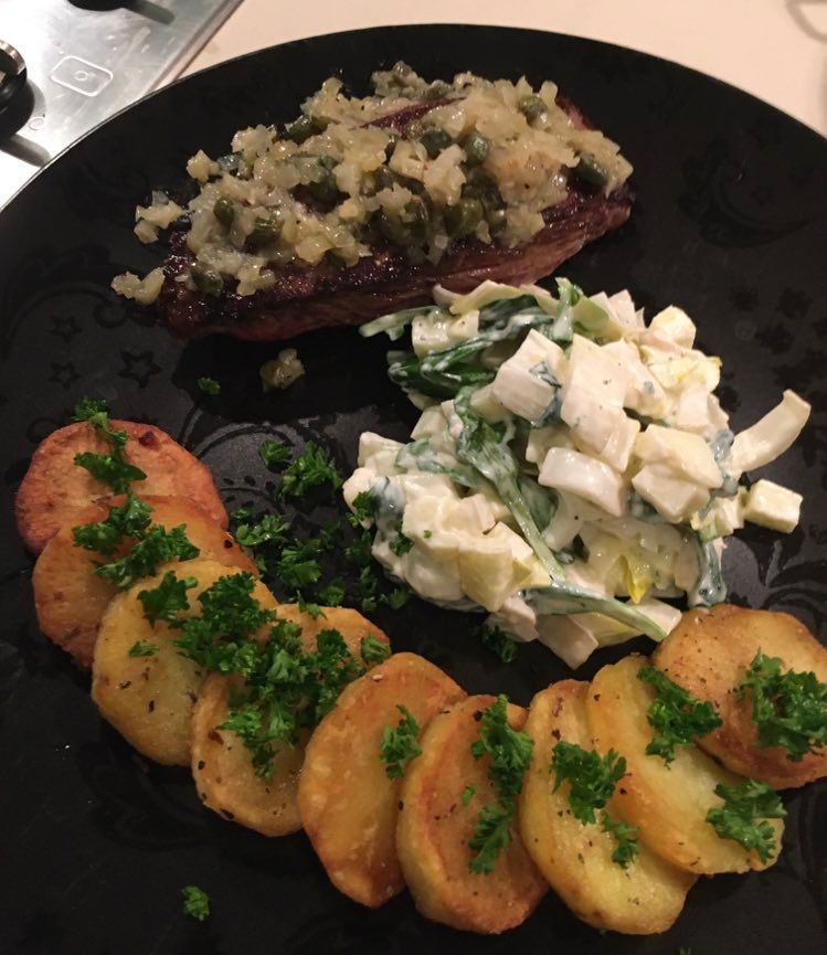 A déguster avec des bonnes frites maison ou comme hier avec une bonne purée passée au four.