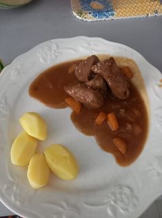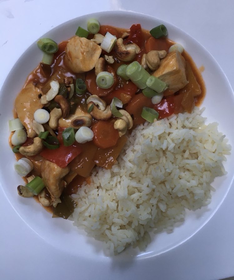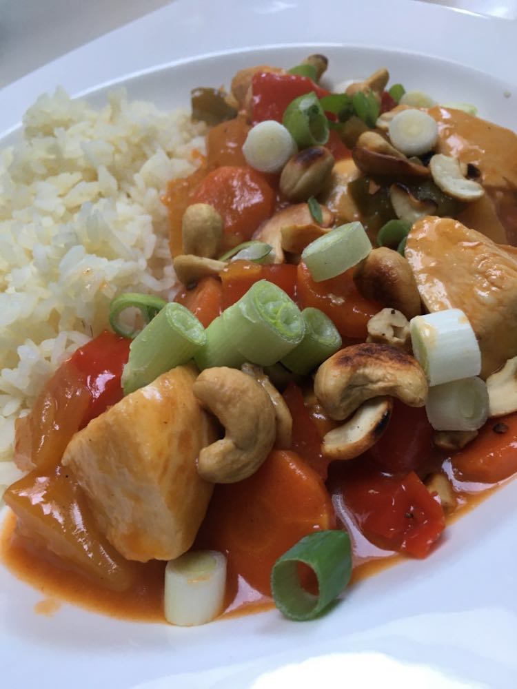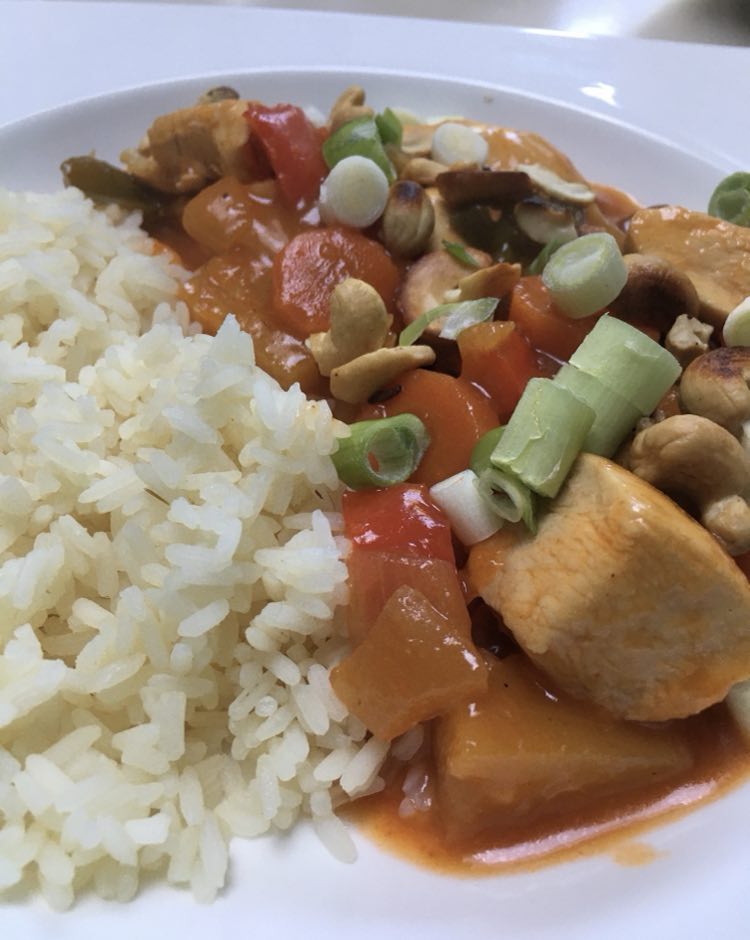 Avec du riz, des pommes de terre ou des frites, là aussi, selon votre envie. Voir même avec une purée. Ma préférence va vers les pommes de terre nature.