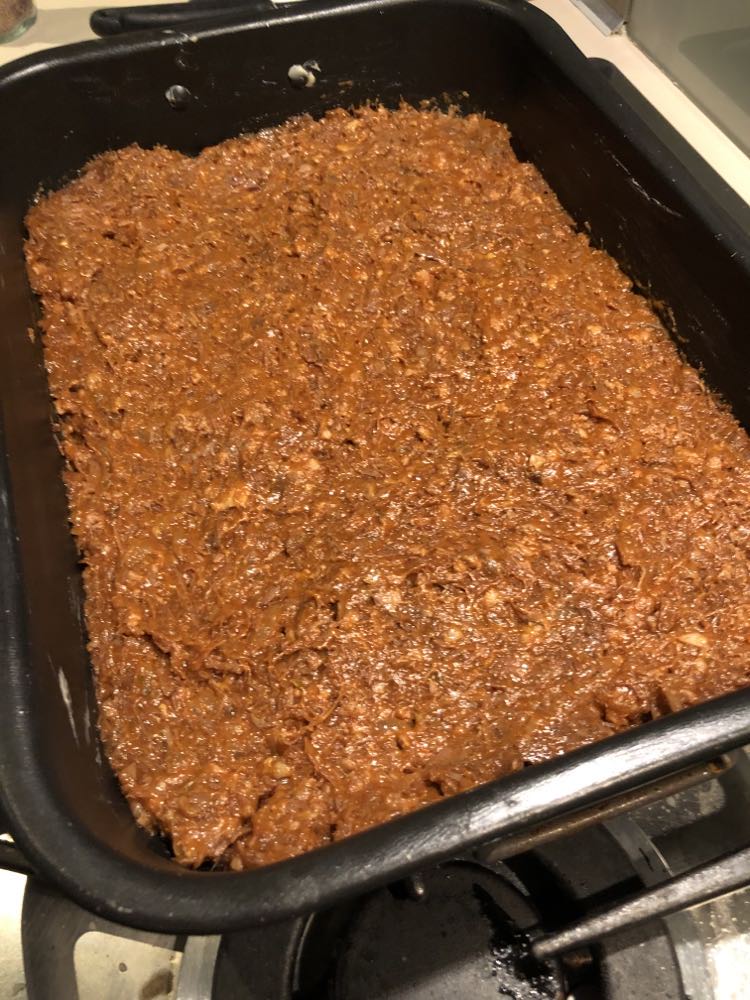 Oublier au four pendant 1 heure à couvert et 1h à découvert. Mélanger de temps en temps et si la sauce vous semble encore trop liquide, poursuivre sur 110° C le temps nécessaire.