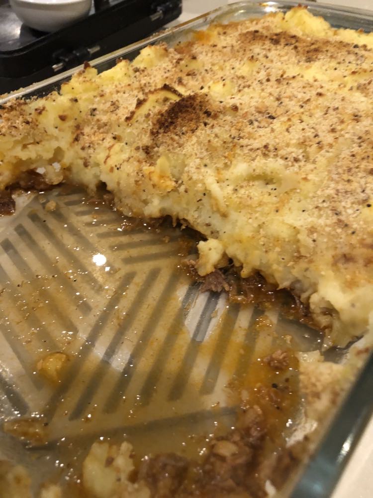 Procédér pour le reste de la même façon que pour les autres morceaux de boeuf, mais il est préférable de mettre en cocotte au four en chaleur tournante à 150°C pendant 3 heures, puis diminuer à 120°C pendant 2 heures. Chequer de temps en temps si la sauce n’épaissit pas de trop et ajouter éventuellement un filet d’eau. La cuisson est plus longue que pour d’autres morceaux car beaucoup de collagène à décomposer.