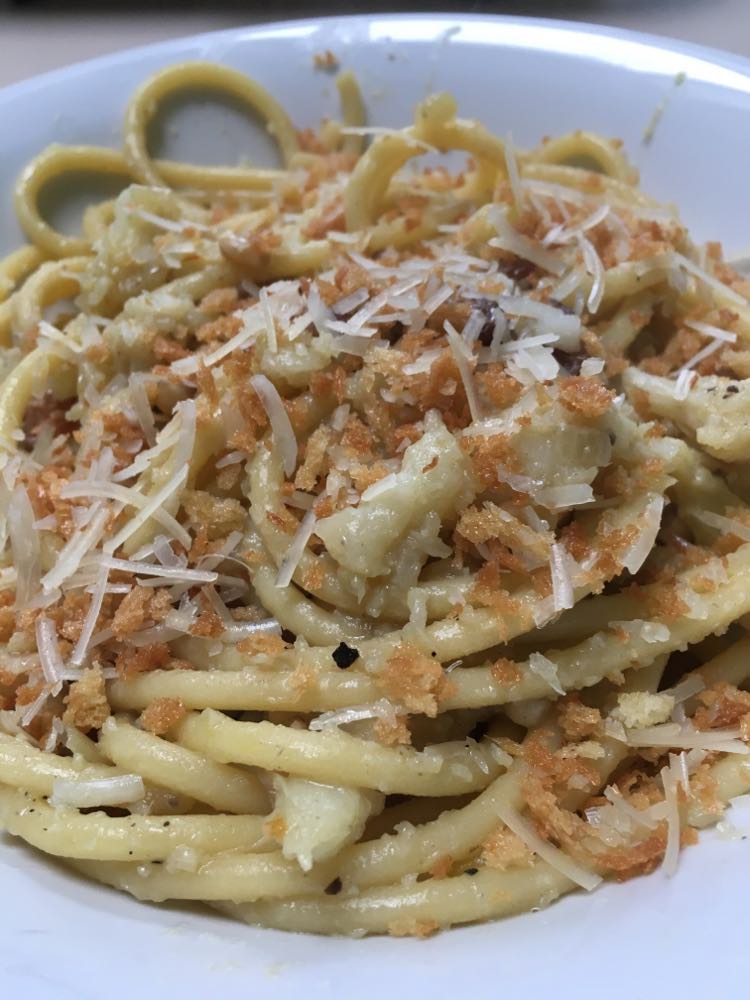 La seule incartade sur la recette originelle, est l’ajout de pecorino dans le pangratatto et comme je n’avais pas de pain rassis, j’ai du utiliser du panko. Mais ça donne très bien ce panko.
