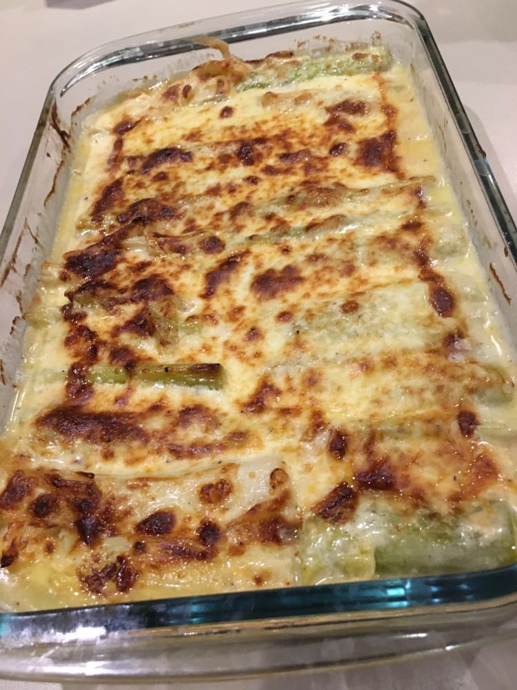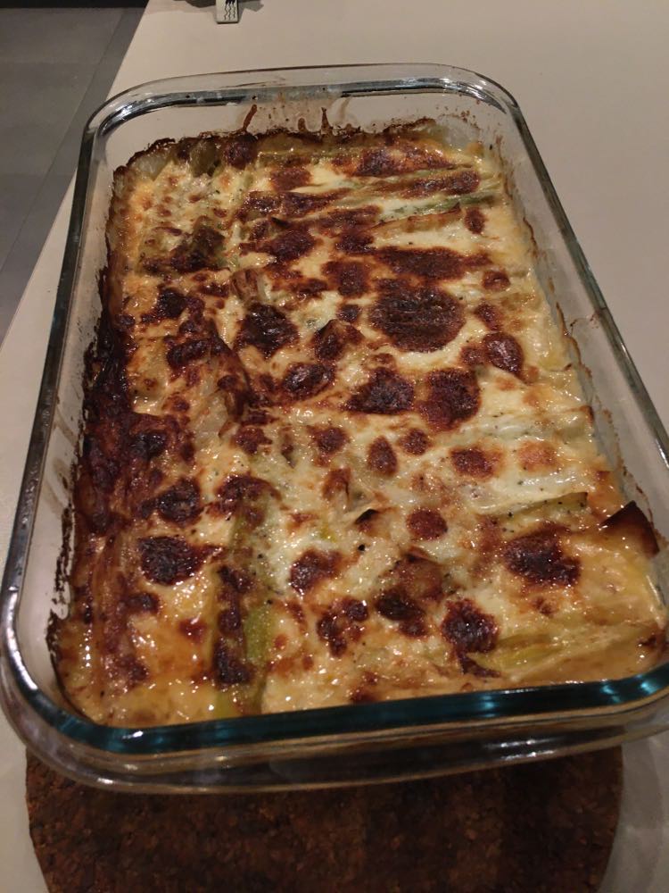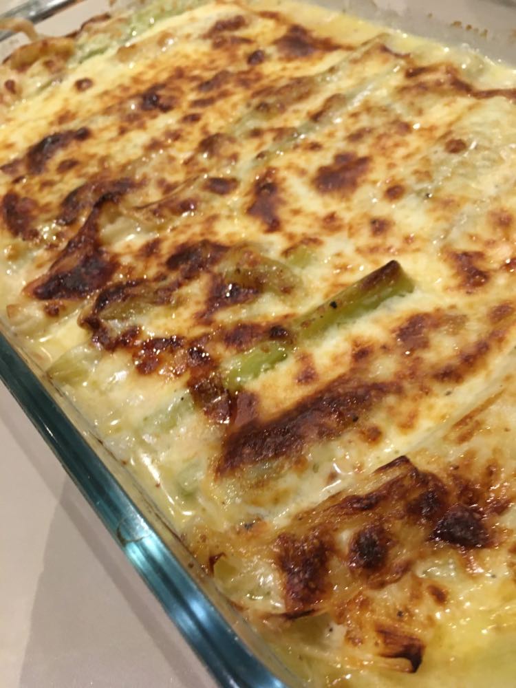 Il y a quelques semaines, Carlo de Pascale publiait une recette de gratin de poireaux au comté sur la page Facebook de la RTBF. J’ai très vite eu envie de tester cette bonne idée, car à part en stoemp ou en embeurrée, voir de temps en temps en vinaigrette, les poireaux sont souvent chez nous relégué au rang de garniture aromatique dans une sauce, un bouillon ou un fond, ou faisant partie d’un potage. Ici le poireau est la star.