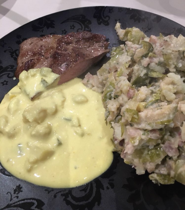 Une fois par an j’ai droit à des choux de Bruxelles et toujours selon la même recette. Ma femme chérie n’aime pas trop l’amertume très puissante du choux de Bruxelles. Mais mon stoemp adouci par la crème, l’oignon rouge, le balsamique et l’abricot passe le test.