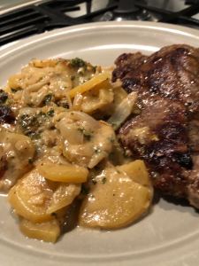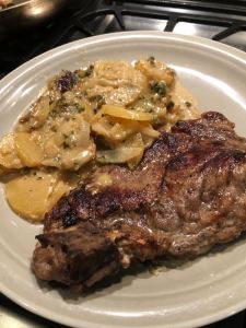 Ce fût excellent, la viande était tendre et le gras était à tomber. Il ne restait plus qu’un petit nonosse dans mon assiette. Je ne veux plus une autre viande de porc quand je cuisine des côtelettes.