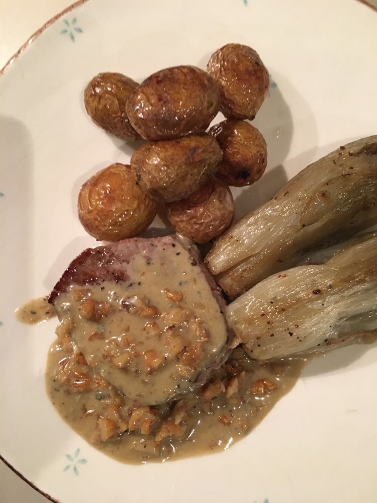 Ca faisait un petit moment déjà que j’avais cette recette en vue d’un repas du dimanche avec ma maman. Mais afin de concilier mon tour au marché du dimanche et le travail que demande cette recette, il fallait que je puisse déjà m’avancer la veille sur la cuisson des poireaux et le matin sur l’épluchage des pommes de terre et la base du beurre blanc. Et puis les samedis ce suivent avec leurs restos, leurs repas chez la famille et d’autres impératifs. Hier ce fût le bon week-end, tout était aligné.