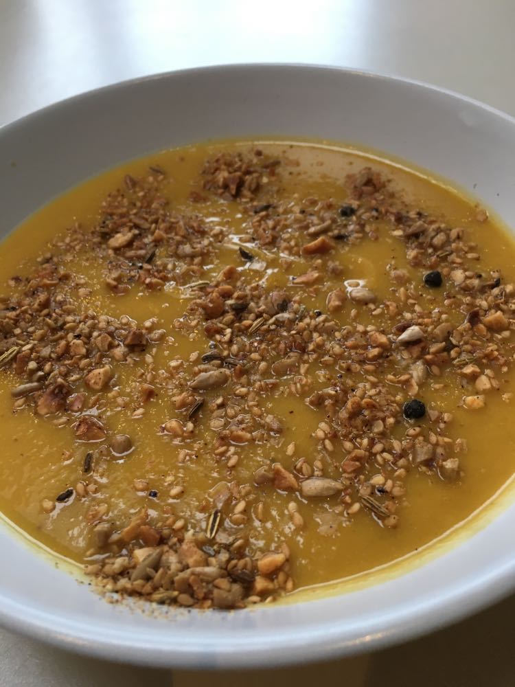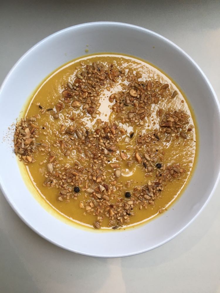 CREME DE CINQ LEGUMES AU COCO, DUKKAH DE NOISETTES