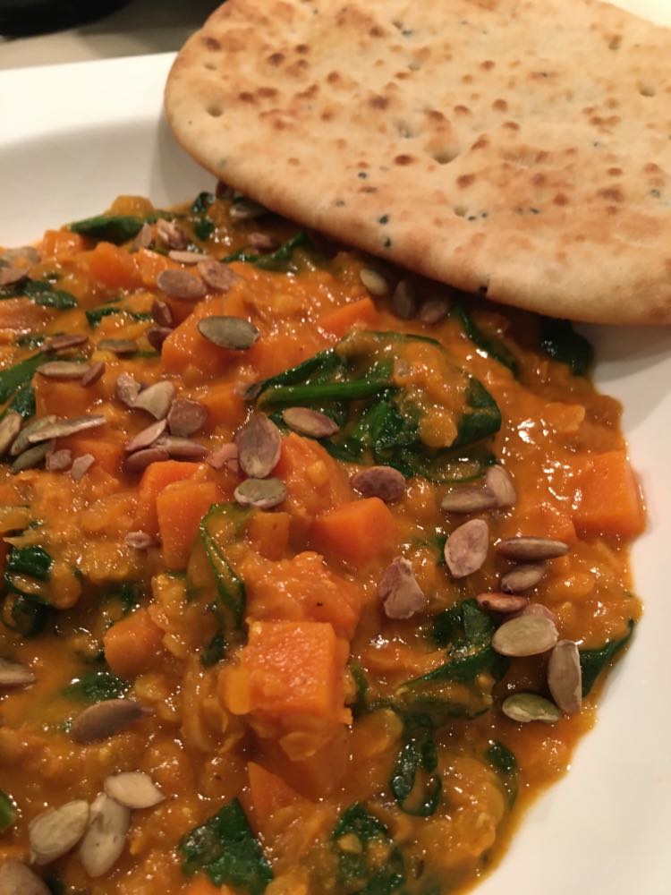 Hier j’ai cuisiné cette recette de Jeroen Meus. Une recette qui prend comme base la salade d’épinards frais à la thaïlandaise mais y ajoute un chou-fleur rôti aux épices espagnoles et marocaines, ainsi que des oignons rouges en aigre-doux. Un mélange des genres, un mélange des origines, mais c’était extra. On a tellement adoré, que j’en augmente les quantités pour une prochaine fois.