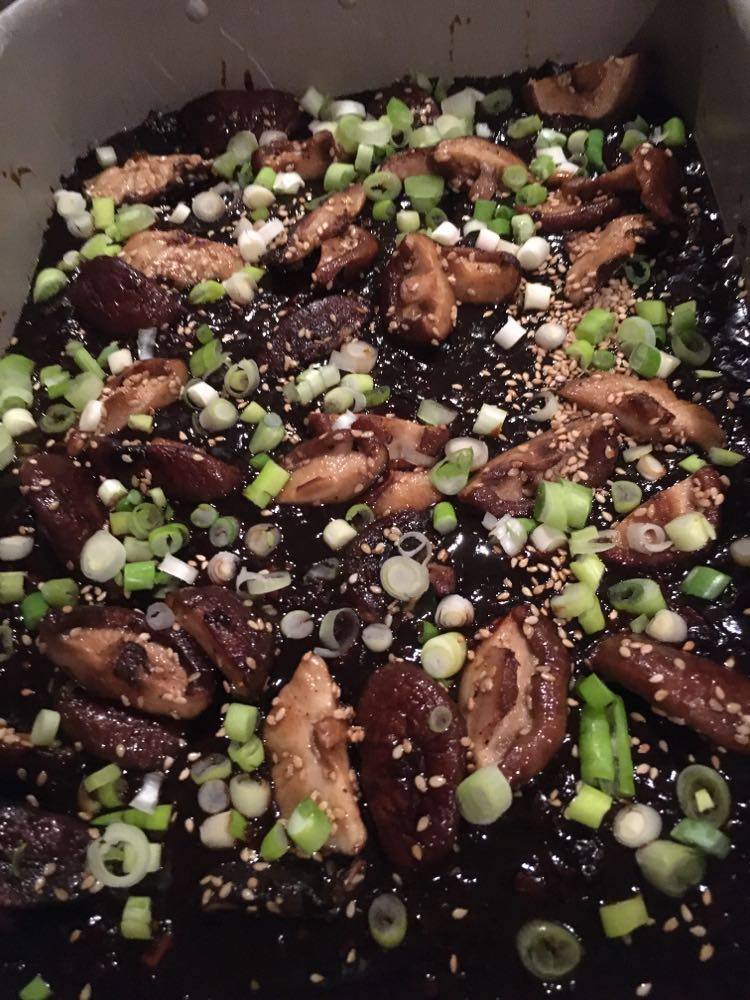 Un chou chinois, un brocoli et un reste de champignons. En me creusant un peu la tête, un wok m’a paru une bonne idée. J’ai toujours tous les ingrédients asiatiques communs dans mes frigo’s et mes armoires au cas ou. Il m’a fallu juste acheter un peu de boeuf et encore quelques champignons.