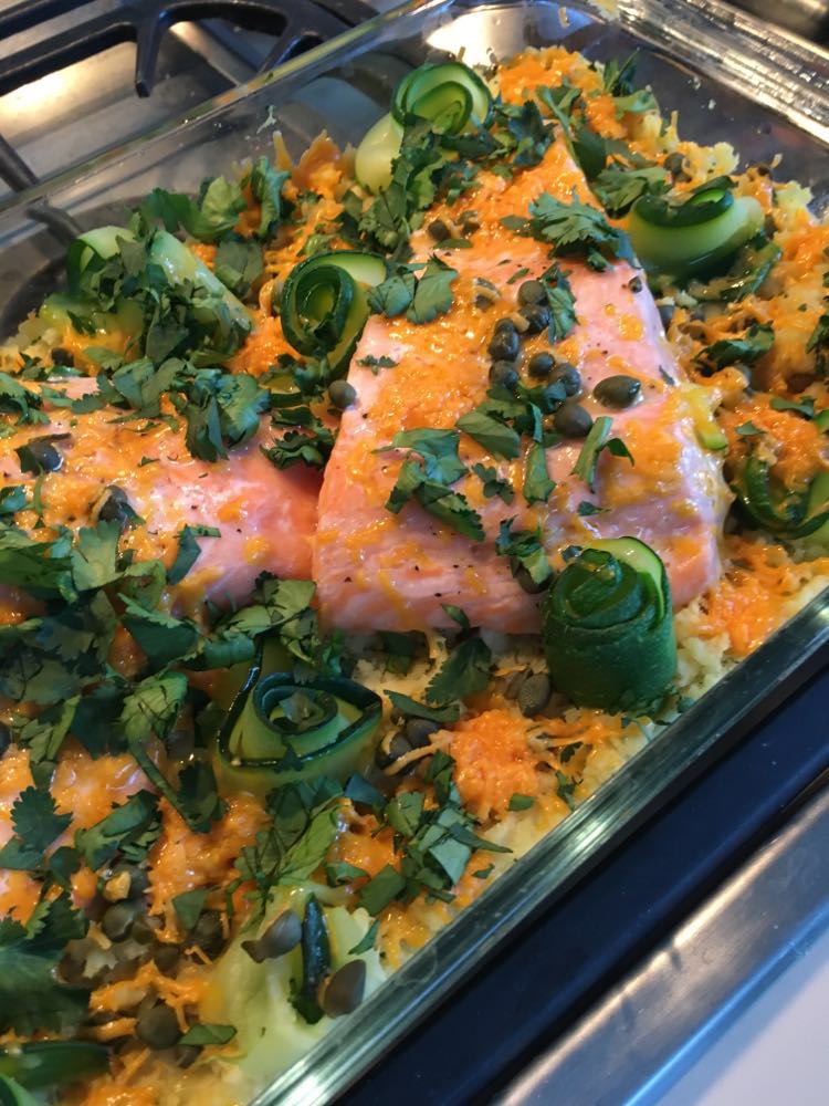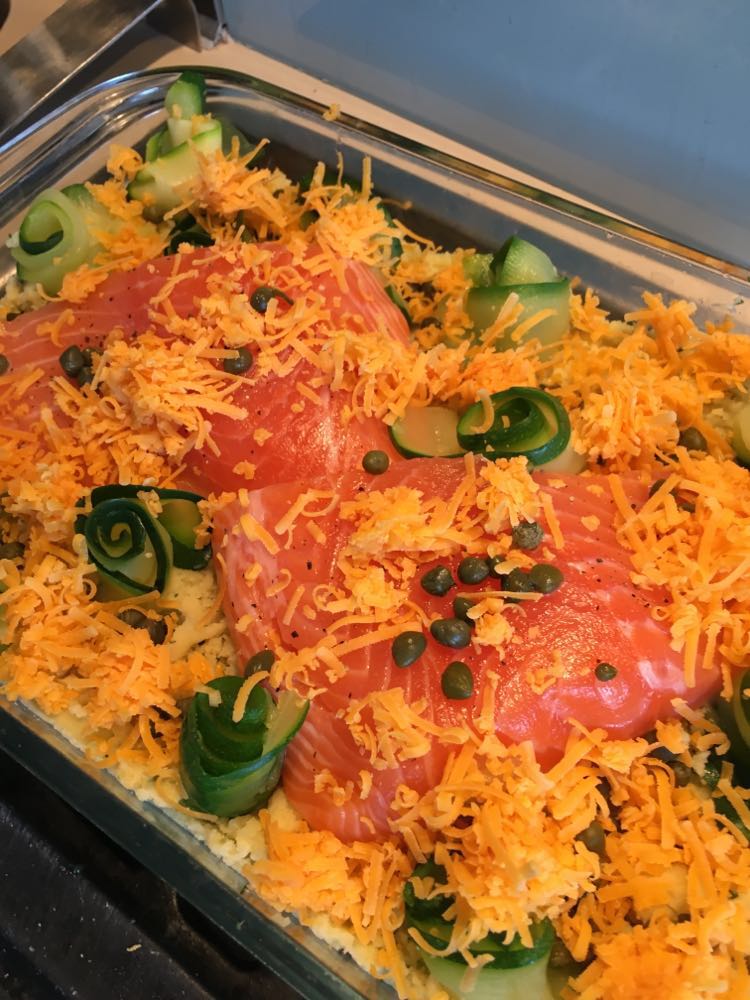 Dessus déverser le mélange oeufs-chèvre-fromage en poussant bien ce mélange dans les interstices entre les légumes.