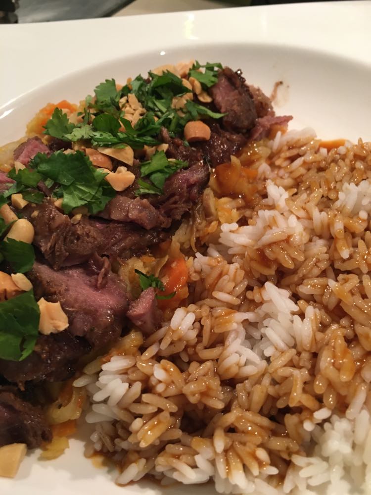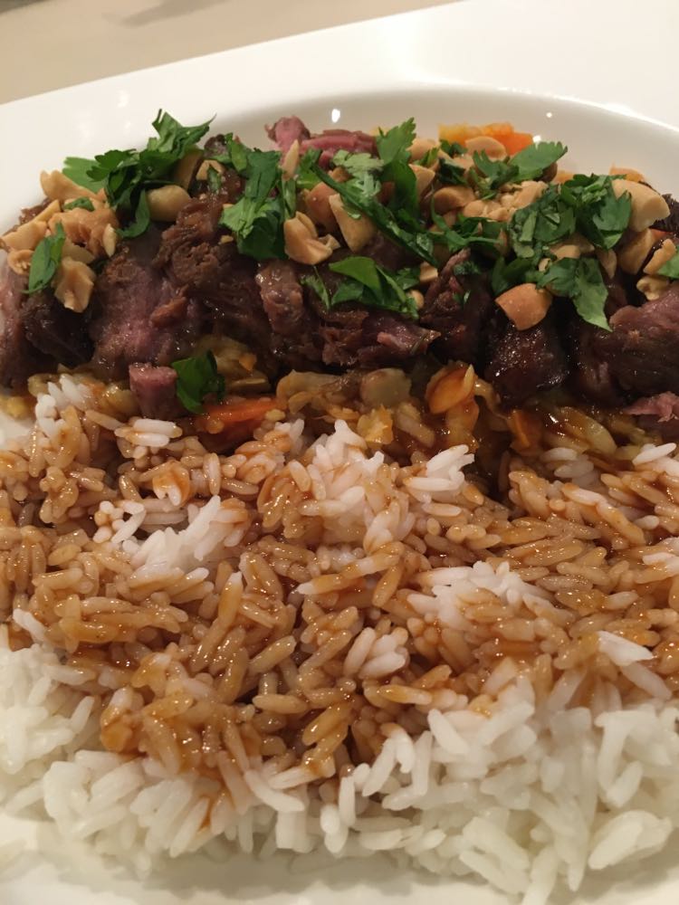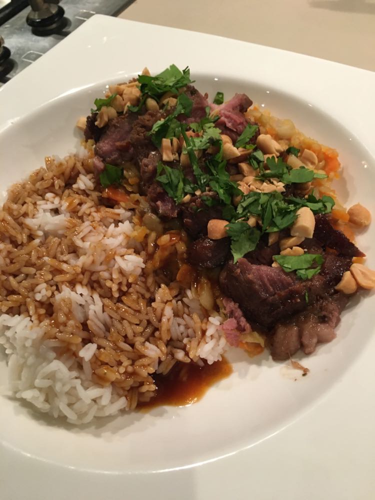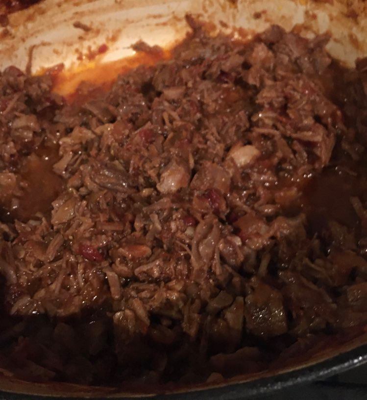 Placer la sauteuse dans un four à 150°C pendant 2 h 30 minutes en mélangeant régulièrement. Ajouter un rien d’eau si nécessaire (je n’ai pas du en ajouter).