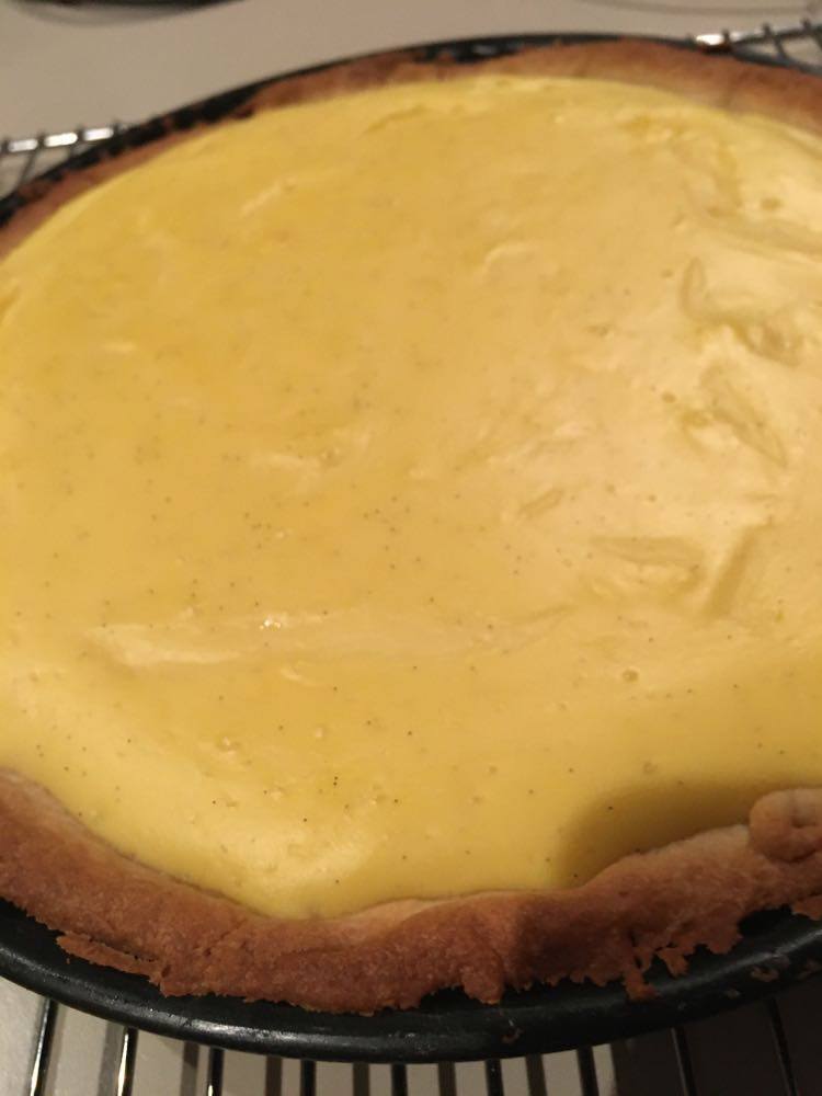 Étaler uniformément la crème pâtissière sur le fond de tarte.