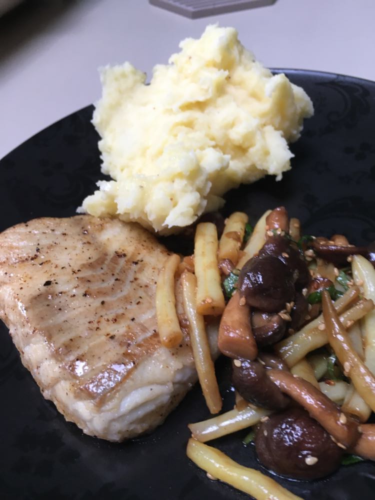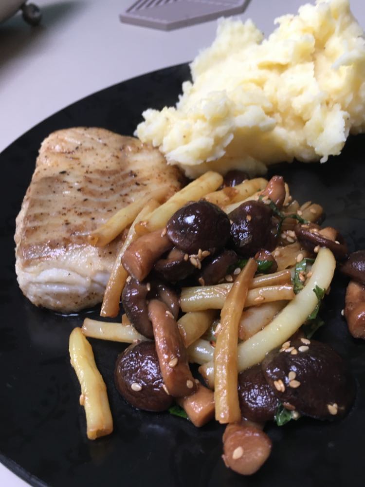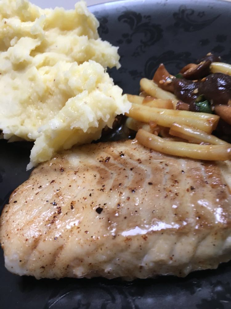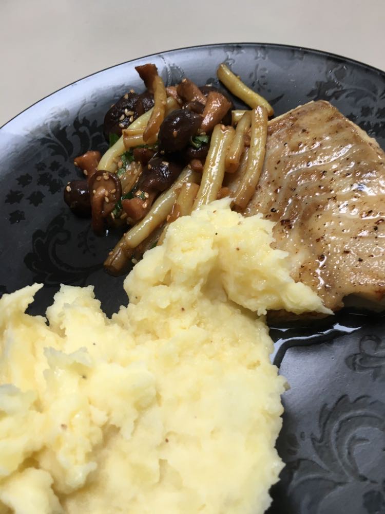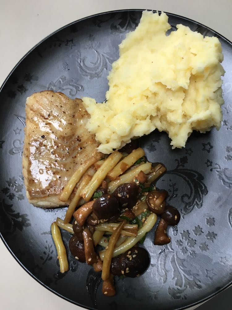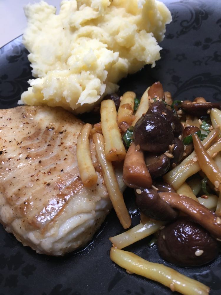 Pour l’accompagnement, rien de plus réconfortant qu’une bonne purée. Cette fois je l’ai ‘pimpée’ avec de la patate douce dans un dosage 1/3 à 2/3. Ca apporte juste la douceur qu’il fallait pour contrer le beurre blanc.
