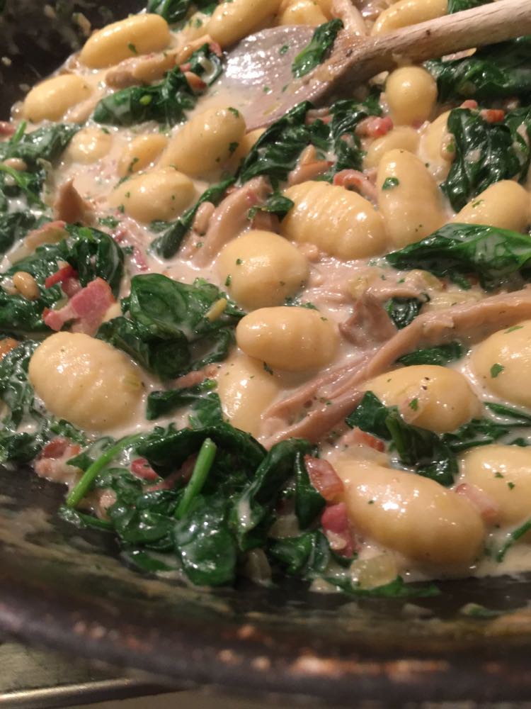 Rectifier l’assaisonnement en sel et en poivre. Retirer le bouquet garni, le clou de girofle (si vous le trouvez) et les baies de genièvre. Ajouter 2 c à s de Gruyère râpé et le laisser fondre en mélangeant. Ôter du feu et garder chaud.