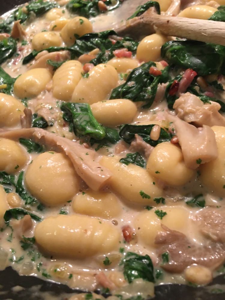 Ajouter la pancetta et l’ail et poursuivre la cuisson sur petit feu pendant 1 minute. Ajouter un petit filet d’eau et garder chaud à couvert.