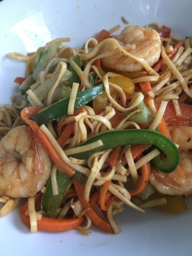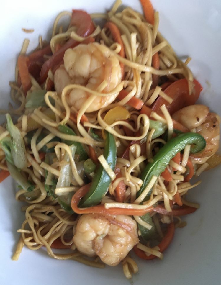RIZ ROUGE TRES PARFUME, SAUTE AUX LEGUMES ET AUX CREVETTES