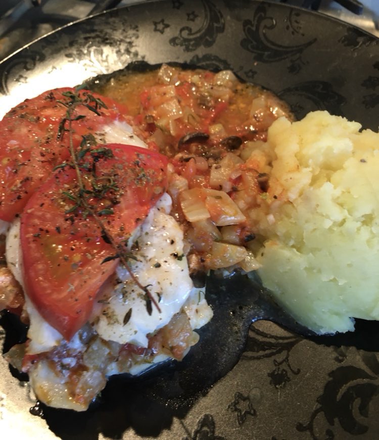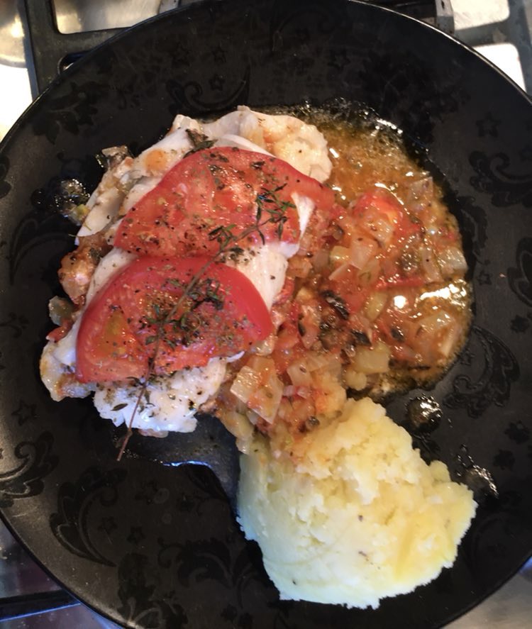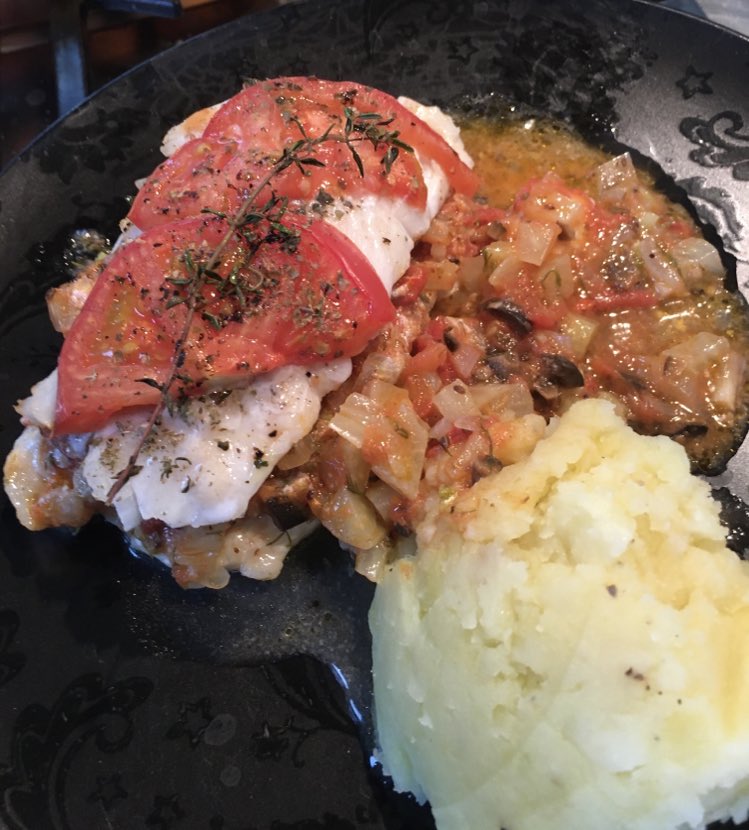 LONGE DE VEAU AUX 4 EPICES, HARICOTS VERTS A LA SAUCE TOMATE ET POMMES DE TERRE